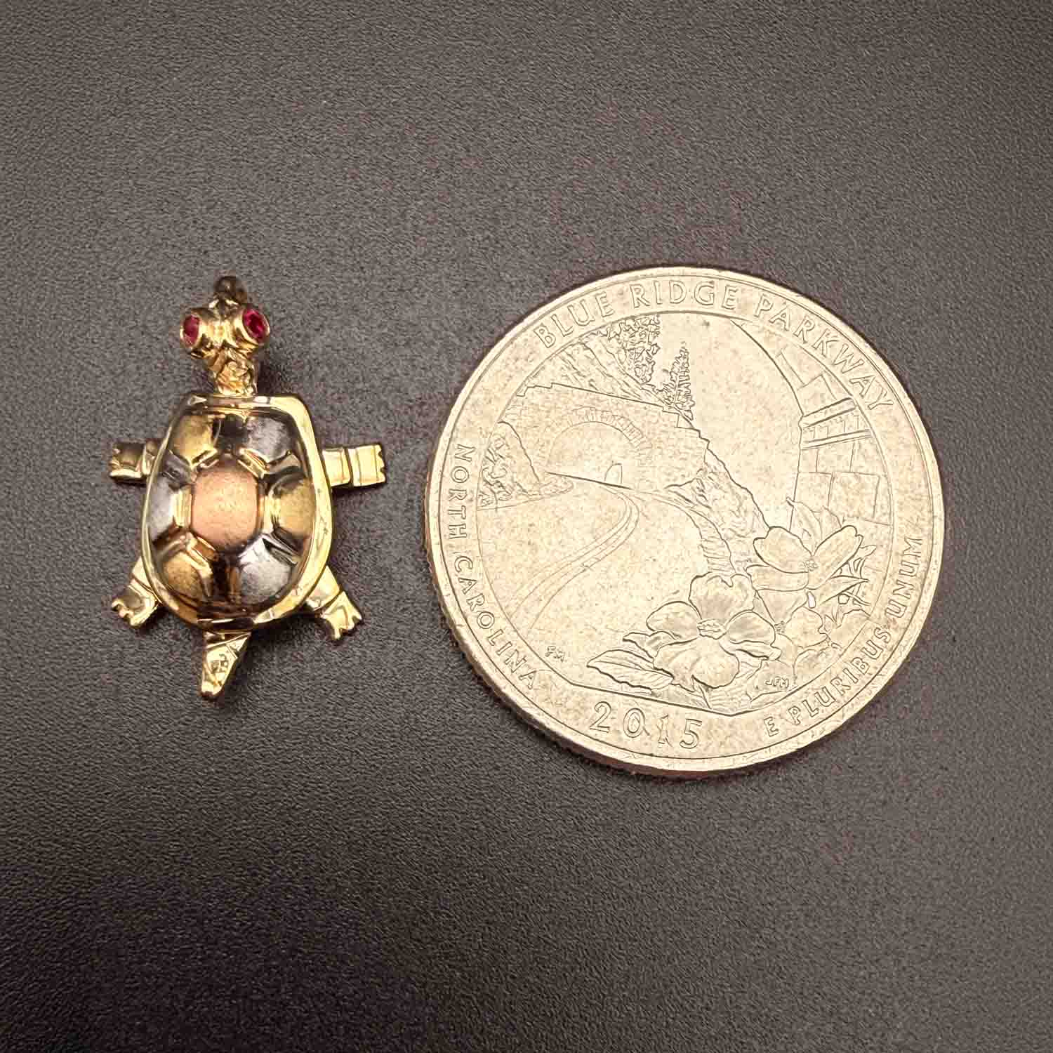 14K Tri Color Gold Turtle Pendant