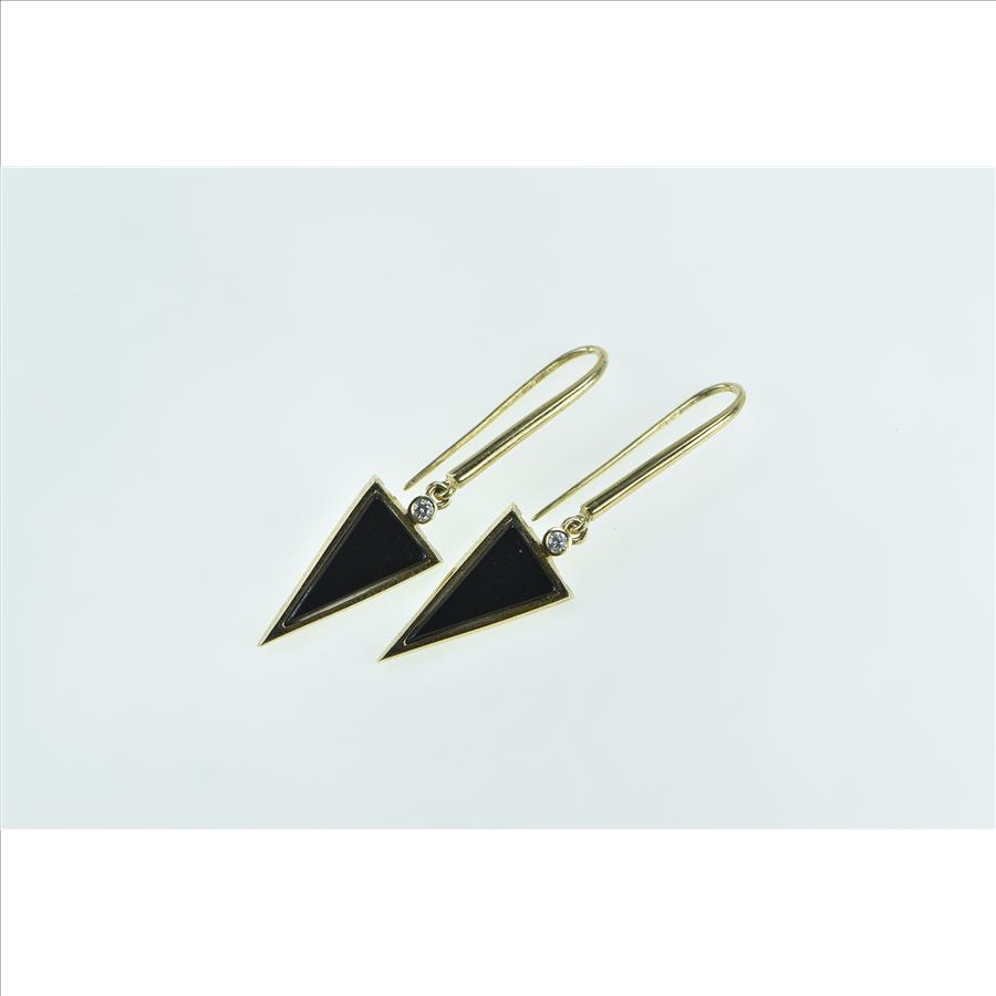 Item:  14K Triangle Black Onyx Diamond Vintage Dangle Yellow Gold Earrings