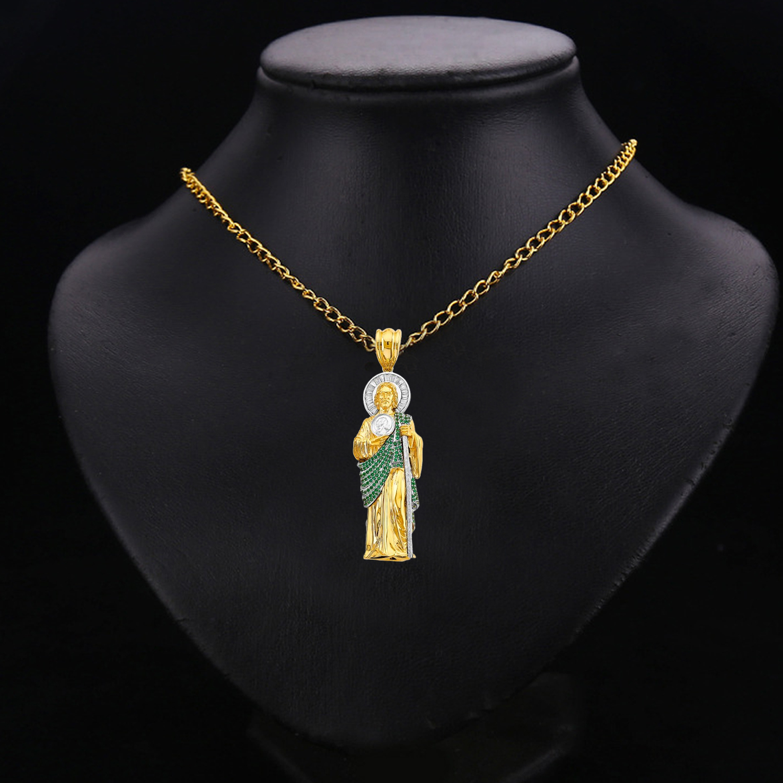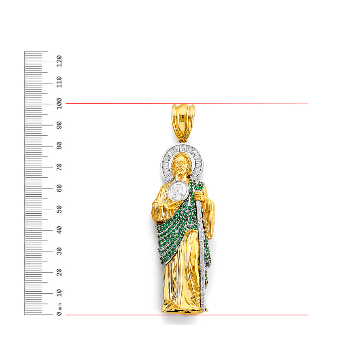 14K Two Tone Cubic zirconia St. Jude Thaddues 3D Pendant