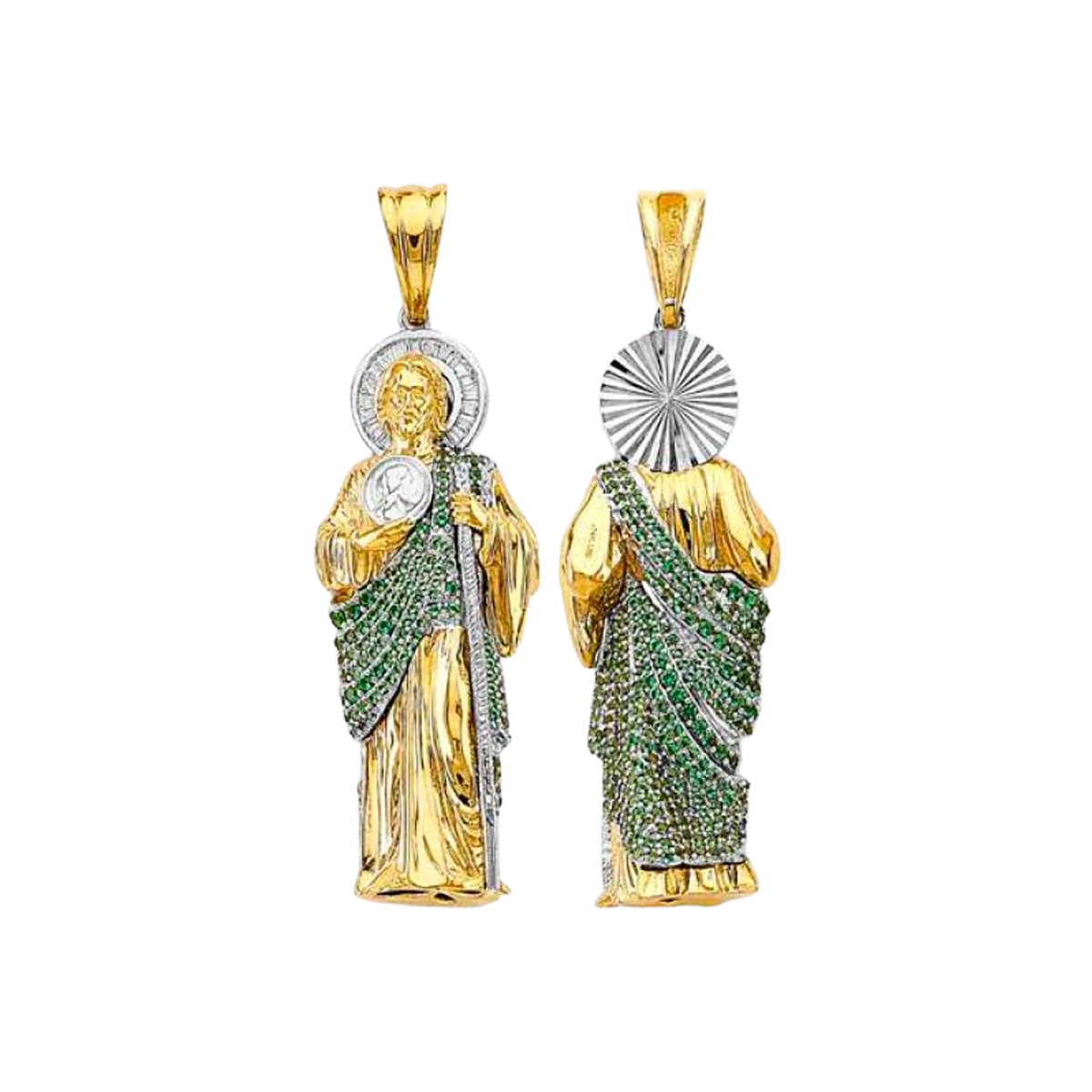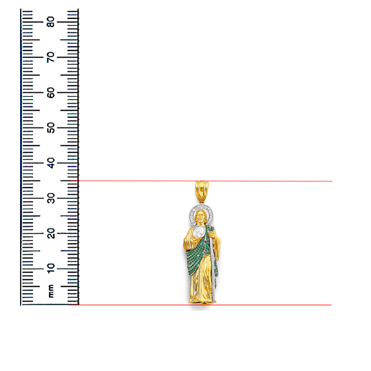 14K Two Tone Cubic zirconia St. Jude Thaddues 3D Pendant
