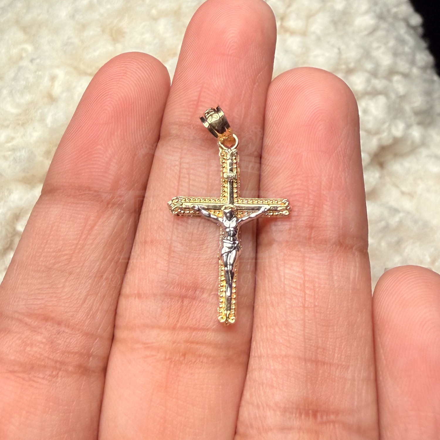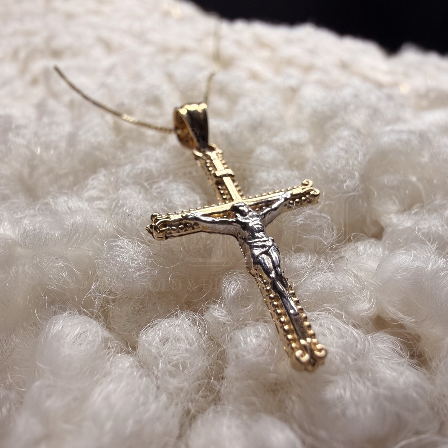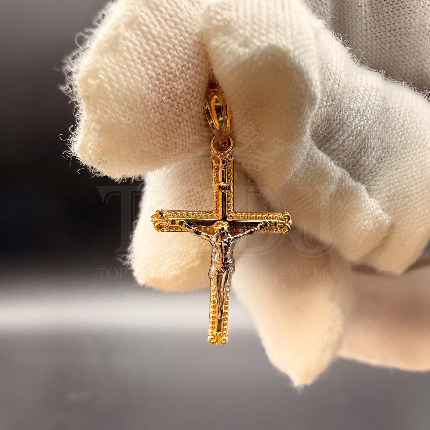 14K Two Tone Gold Crucufix Pendant With Yellow Gold 0.5mm Box Chain - 18 Inch