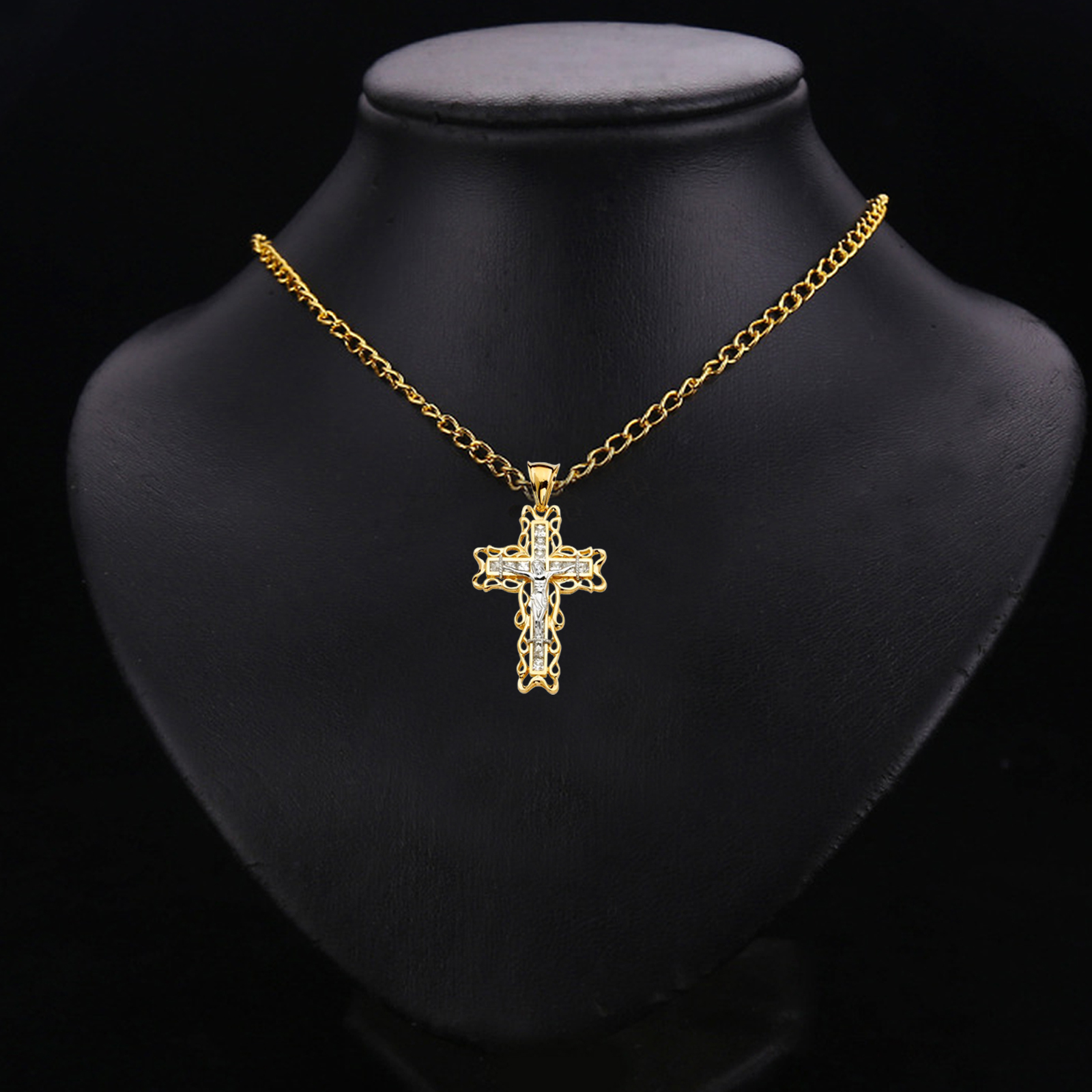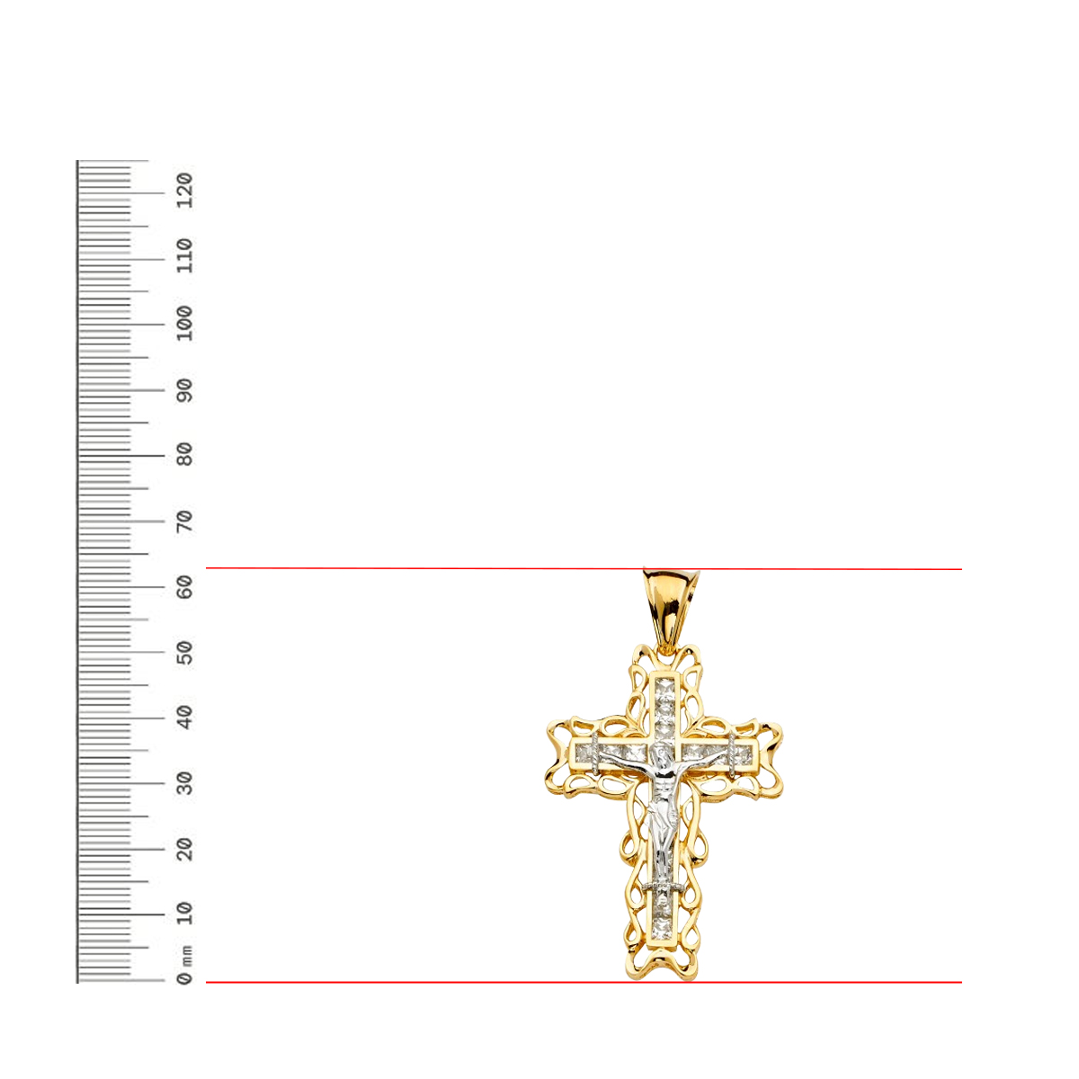 14K Two Tone Gold Cubic zirconia Crucufix Cross Pendant