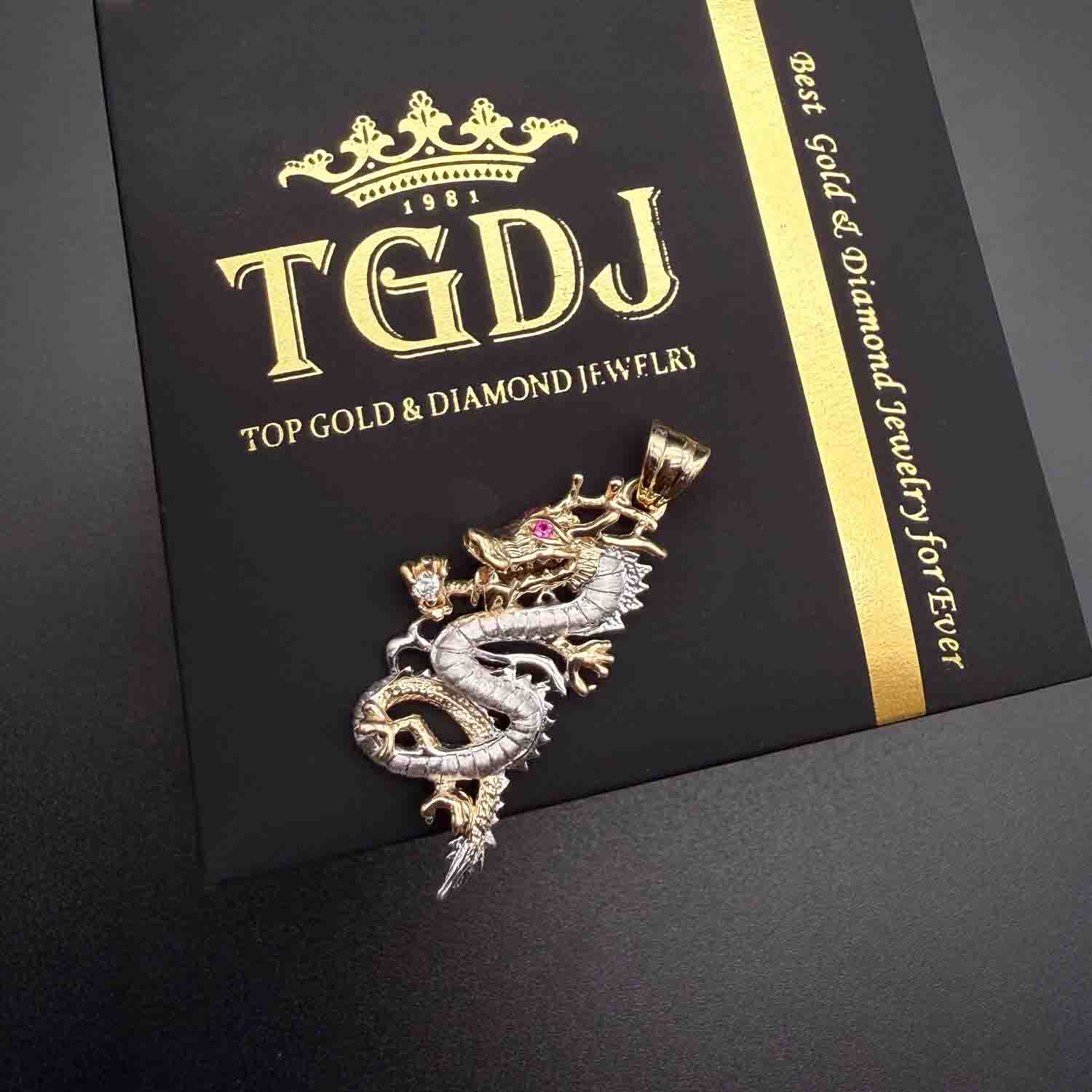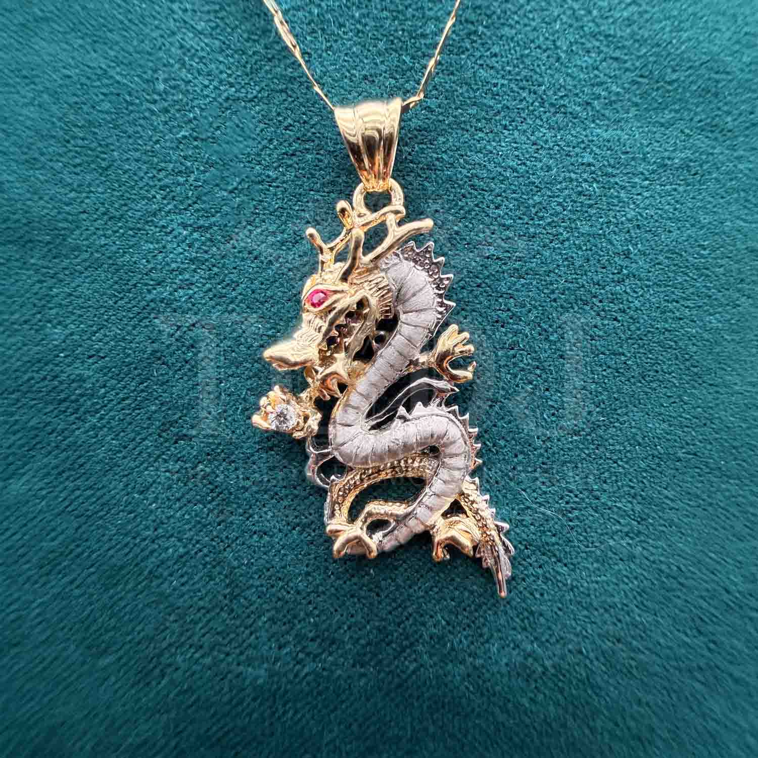 14K Two Tone Gold cubic zirconia Dragon Pendant