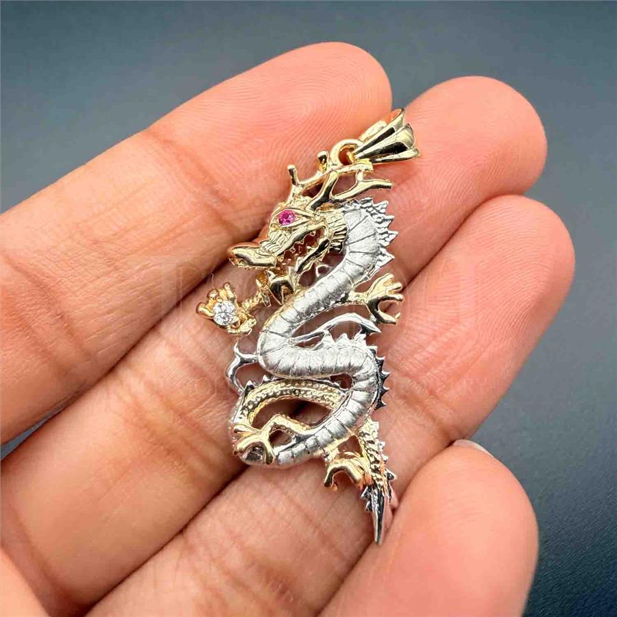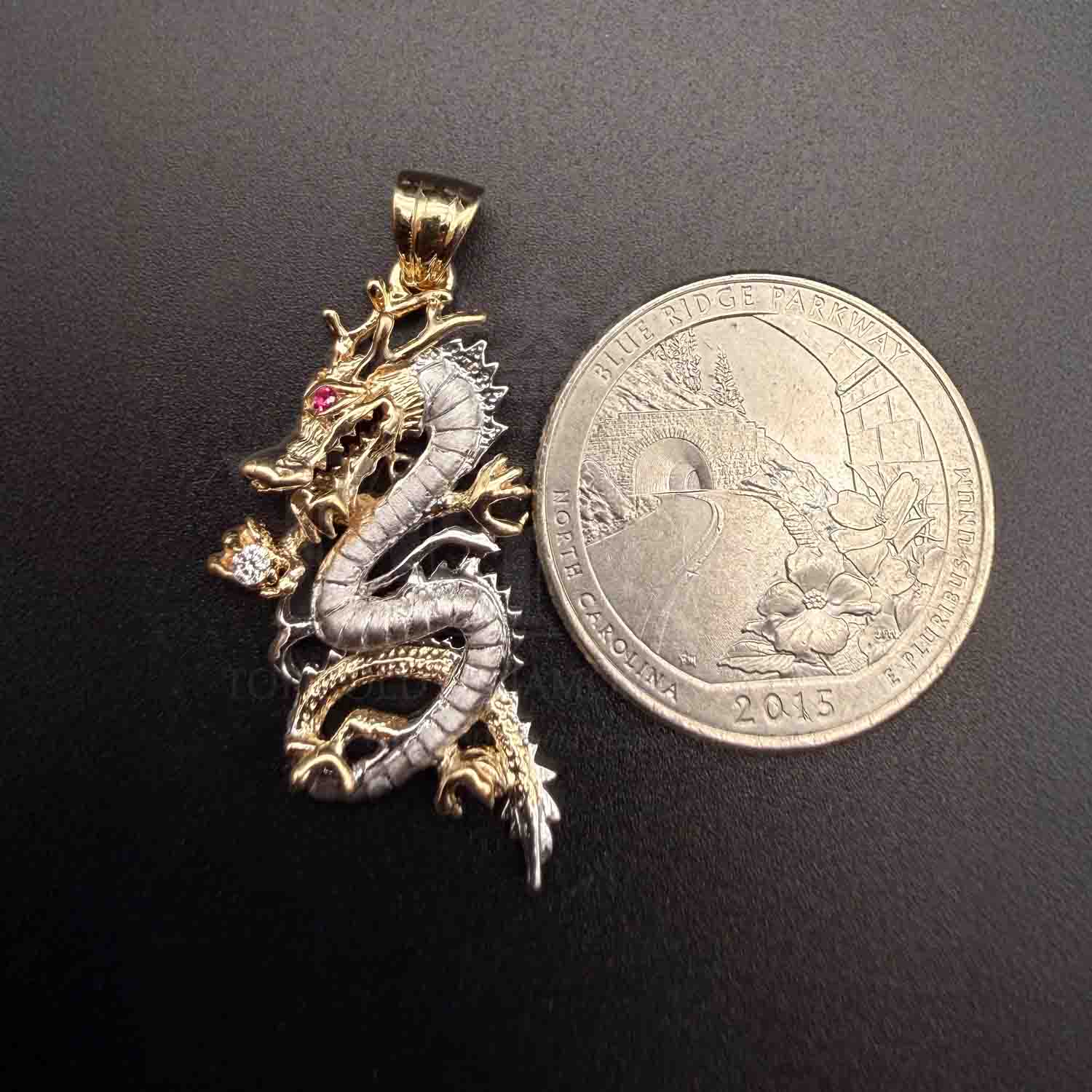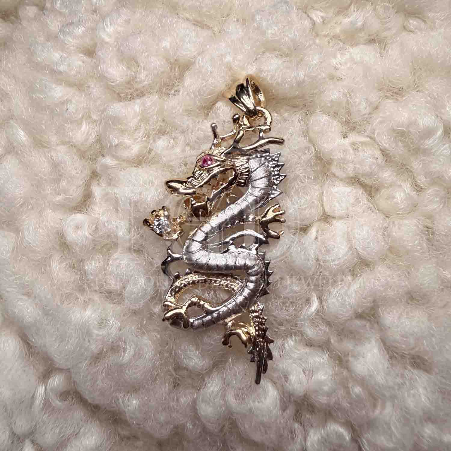 14K Two Tone Gold cubic zirconia Dragon Pendant