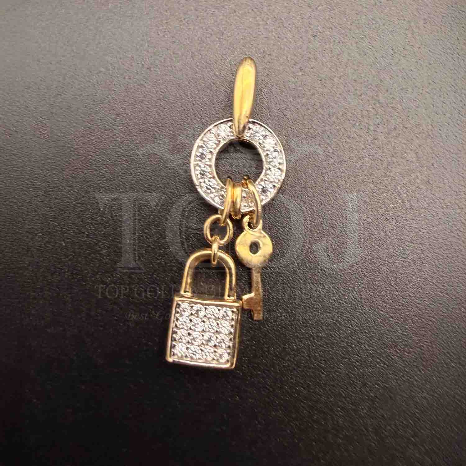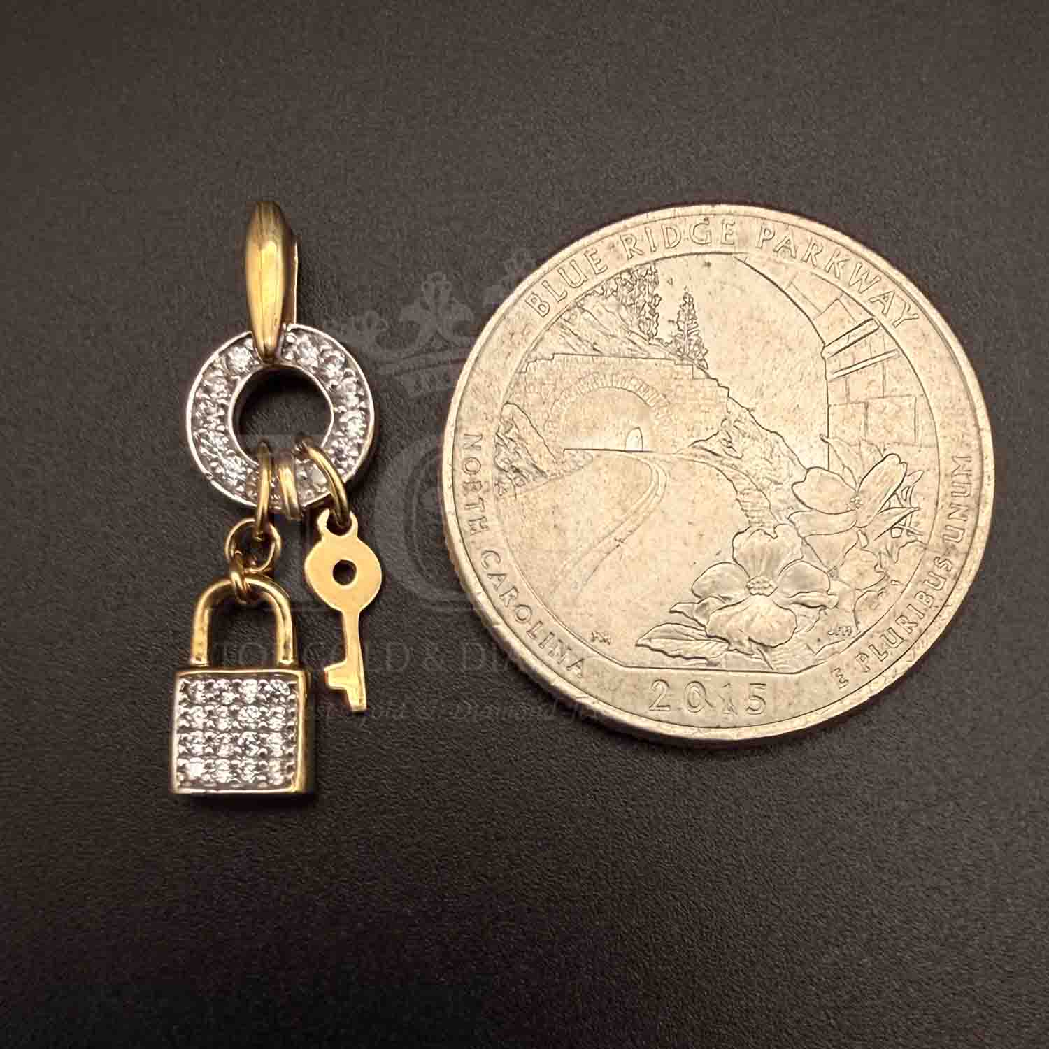 14K Two Tone Gold cubic zirconia Key & Lock Pendant