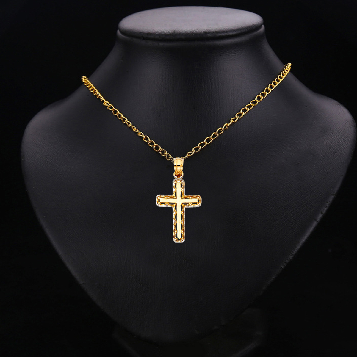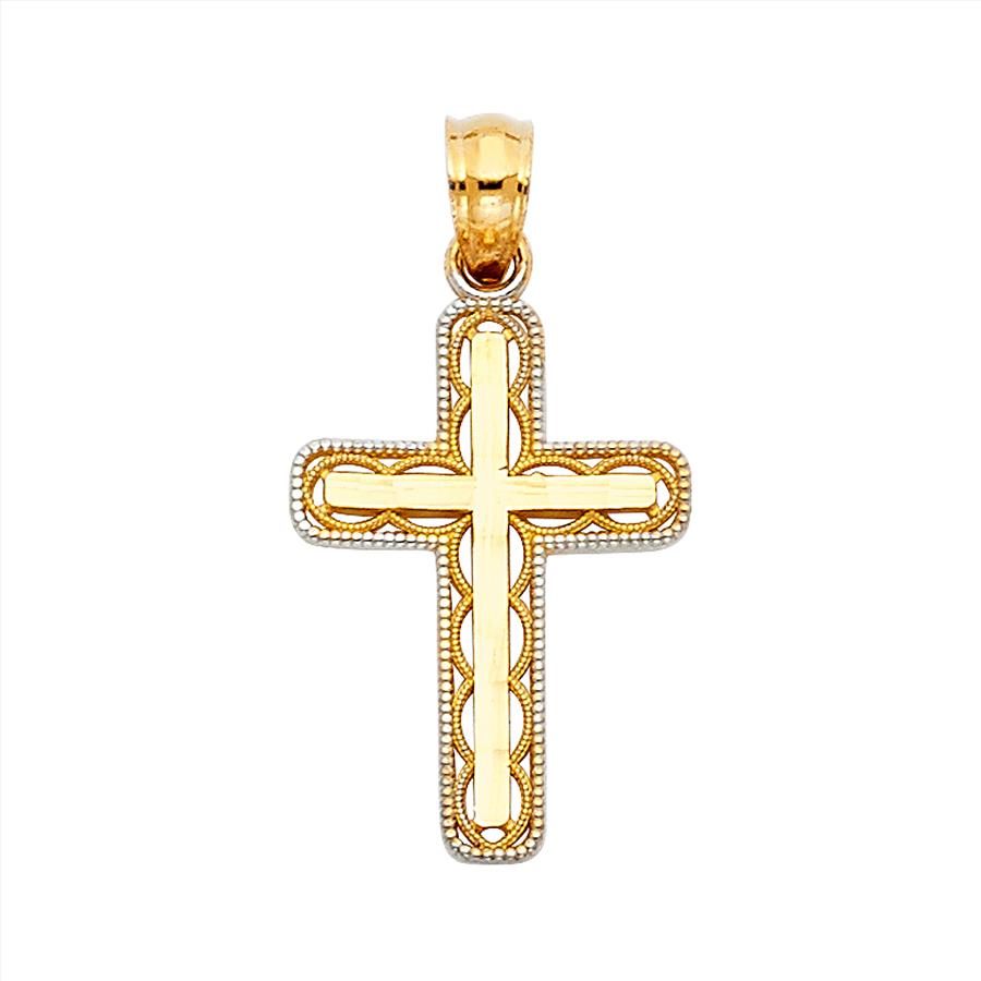 14K Two Tone Gold Design Cross Pendant