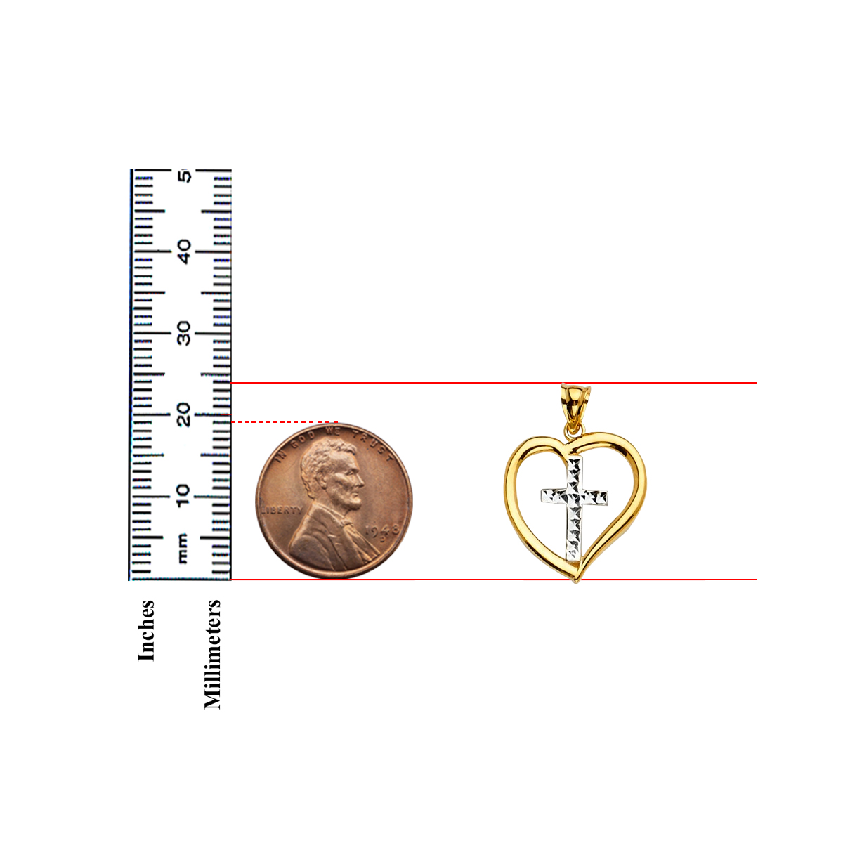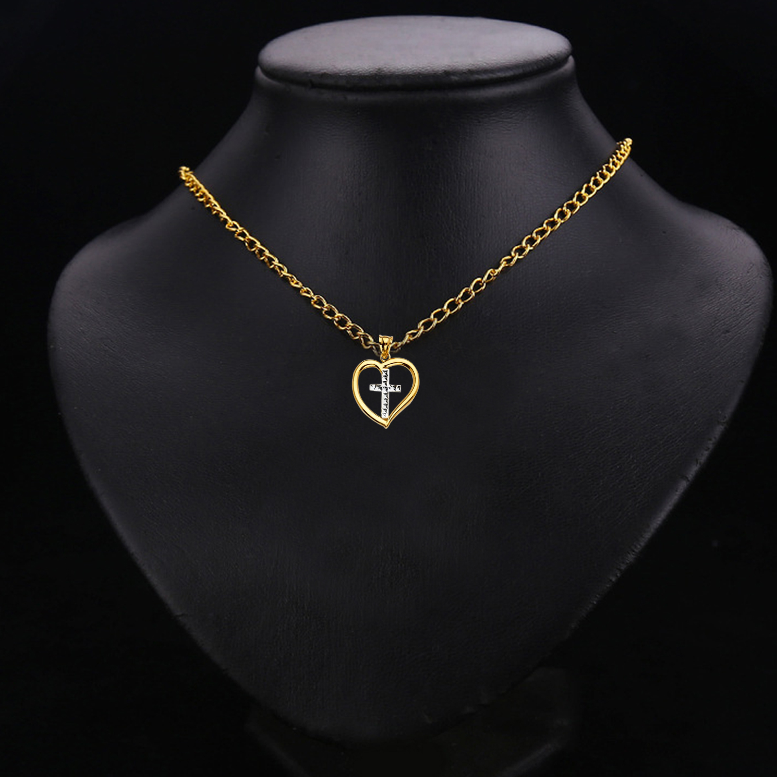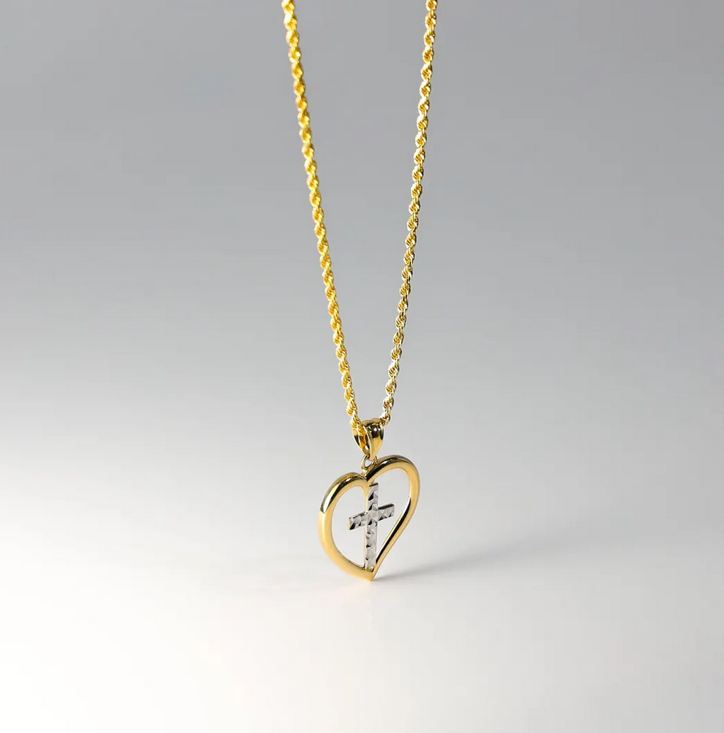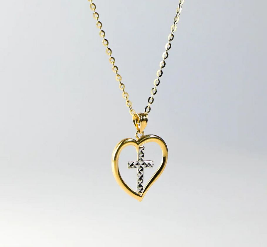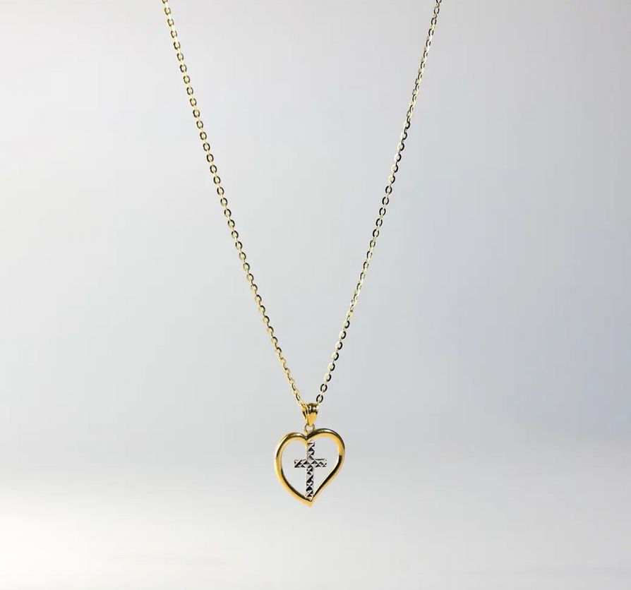 14K Two Tone Gold Heart Pendant with Cross Pendant