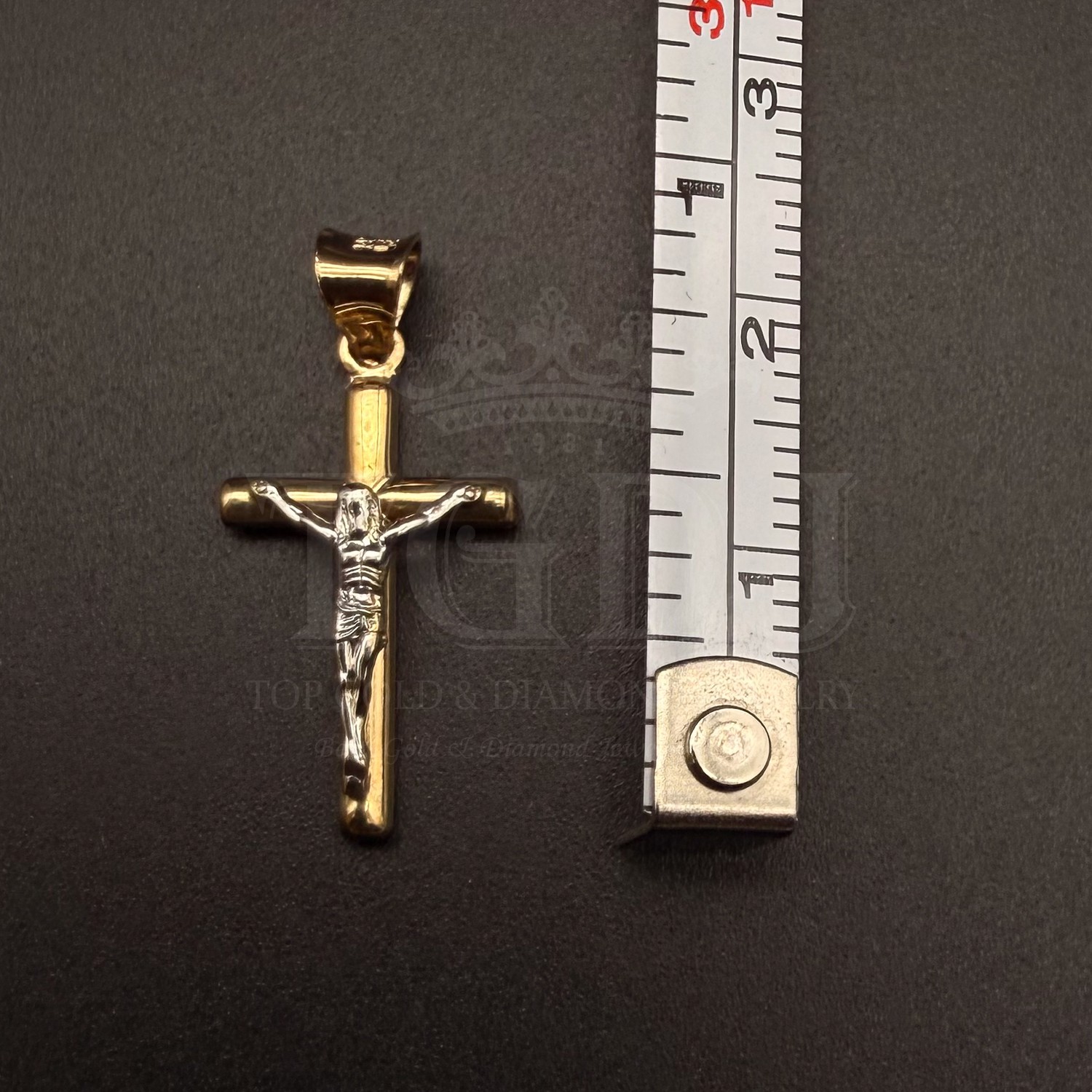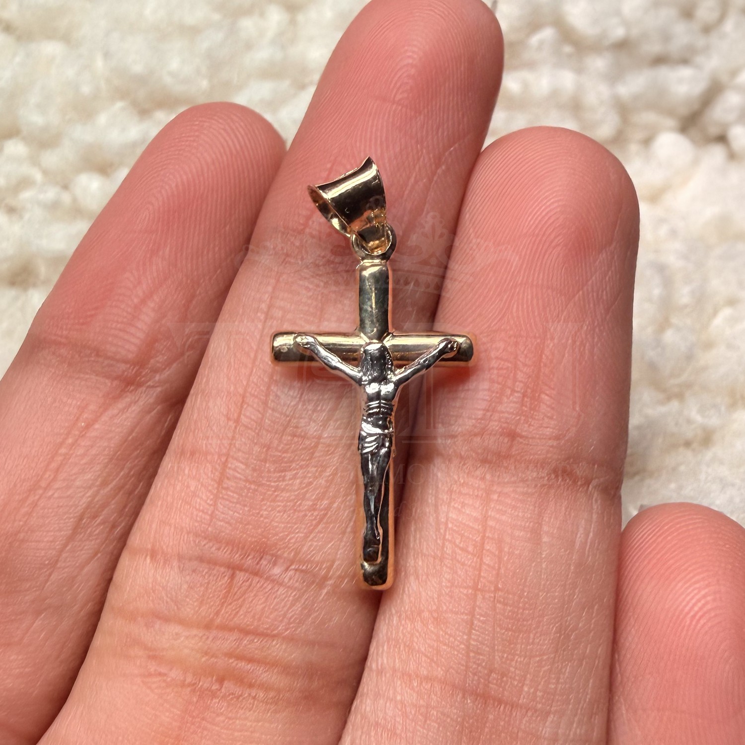 14K Two Tone Gold Hollow Round Tube Crucufix Pendant