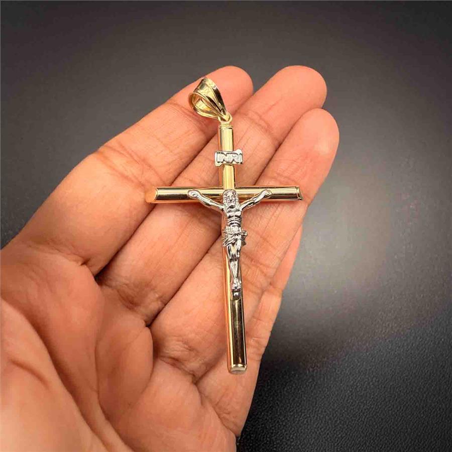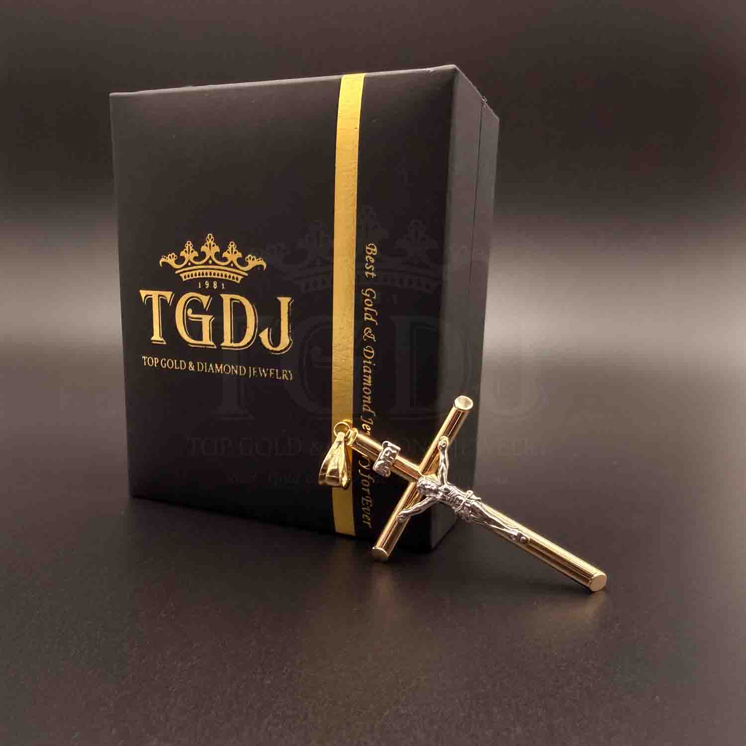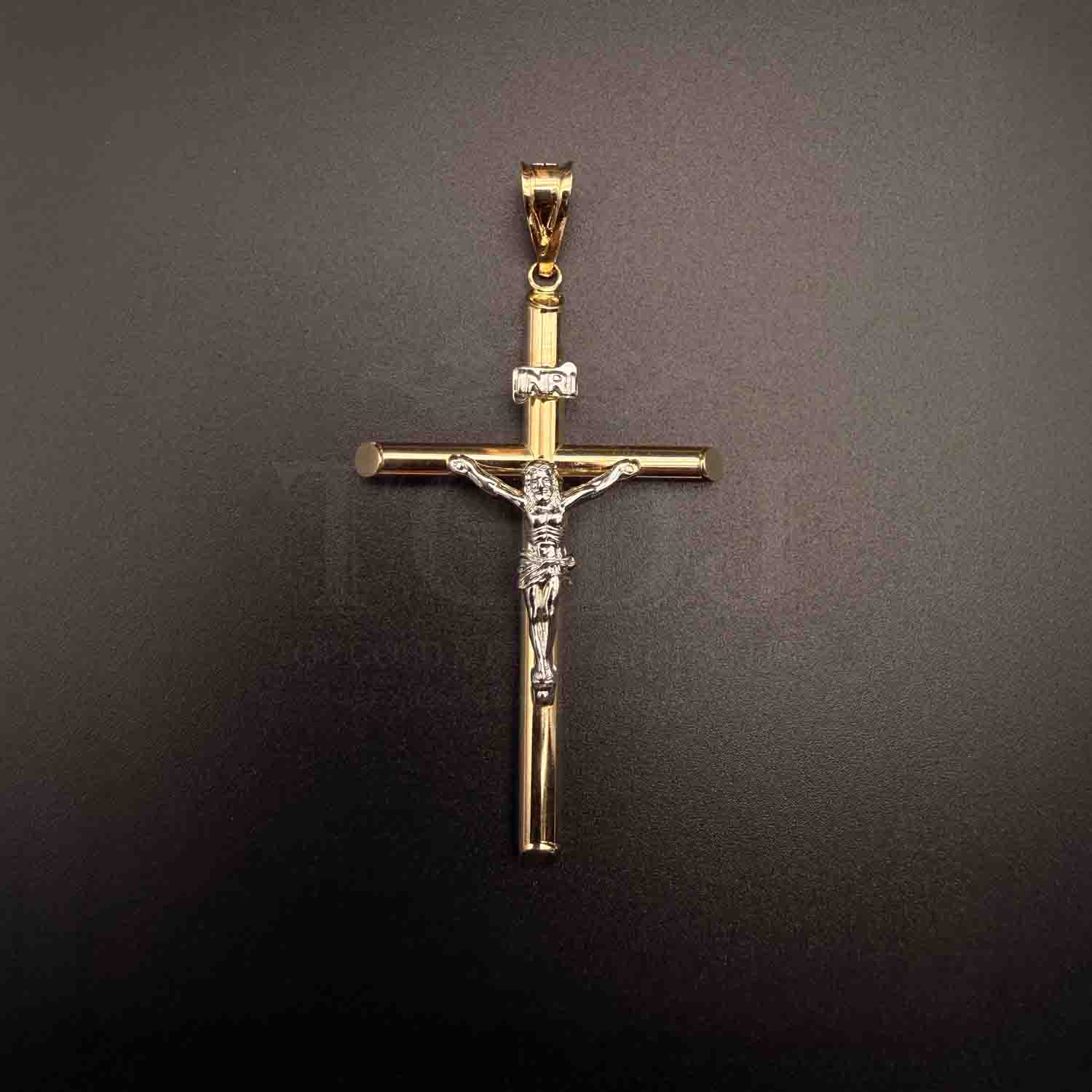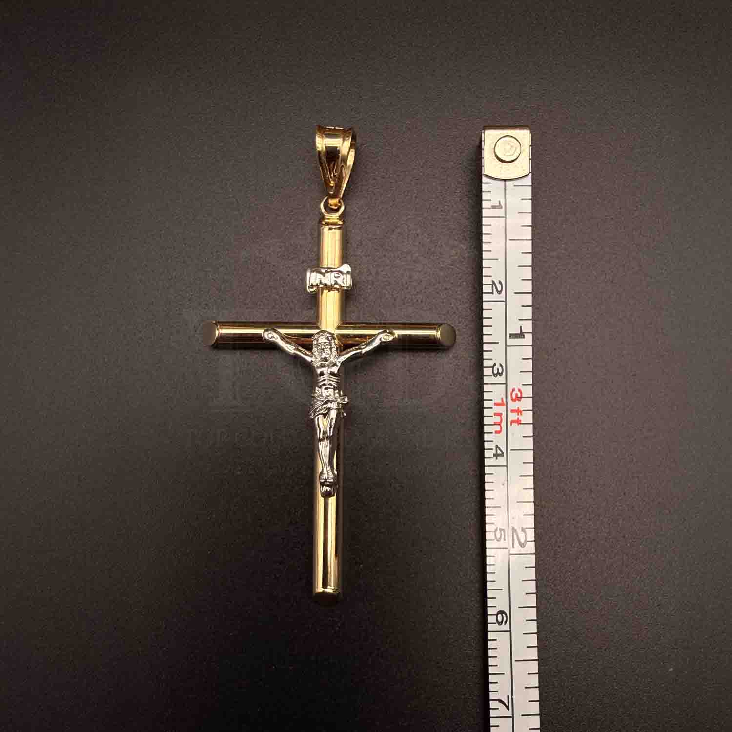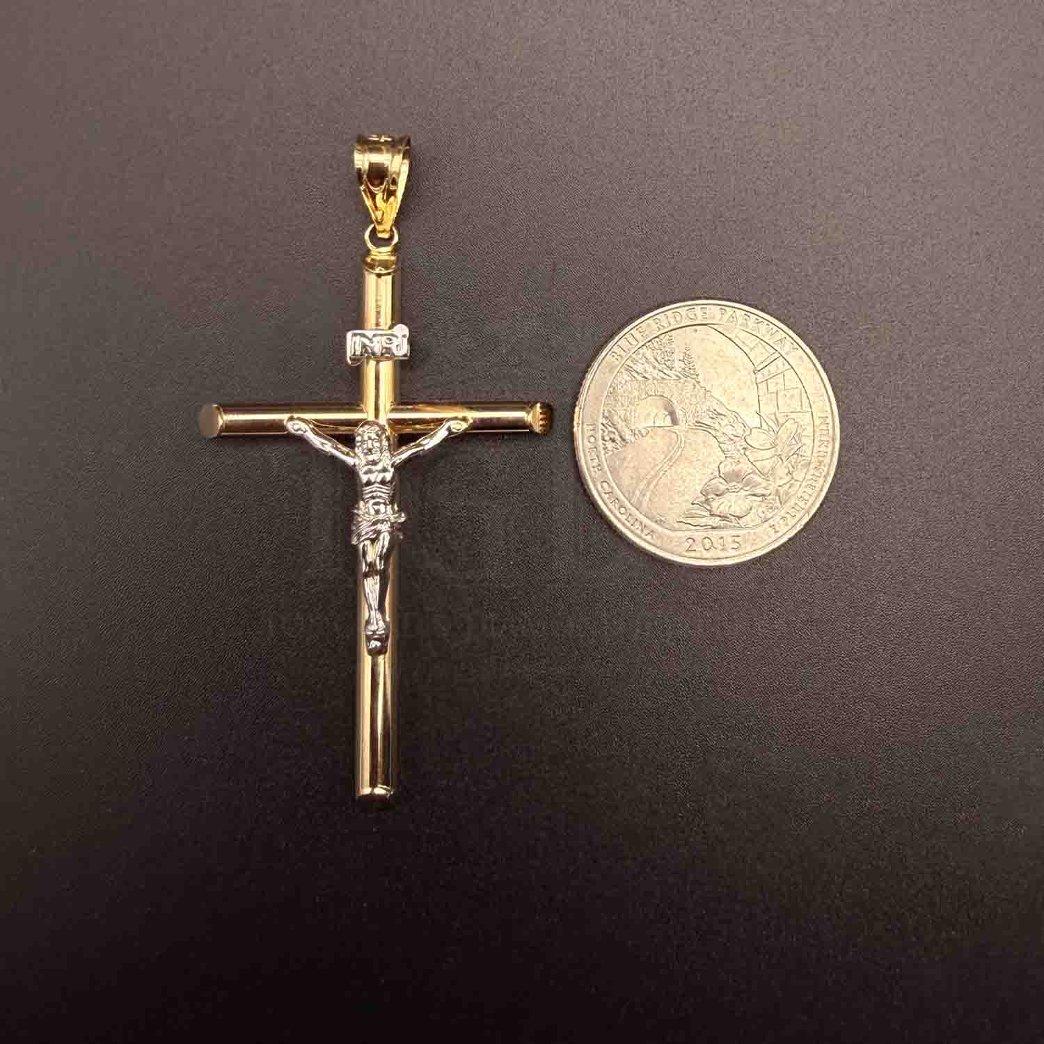 14K Two Tone Gold Hollow Round Tube Crucufix