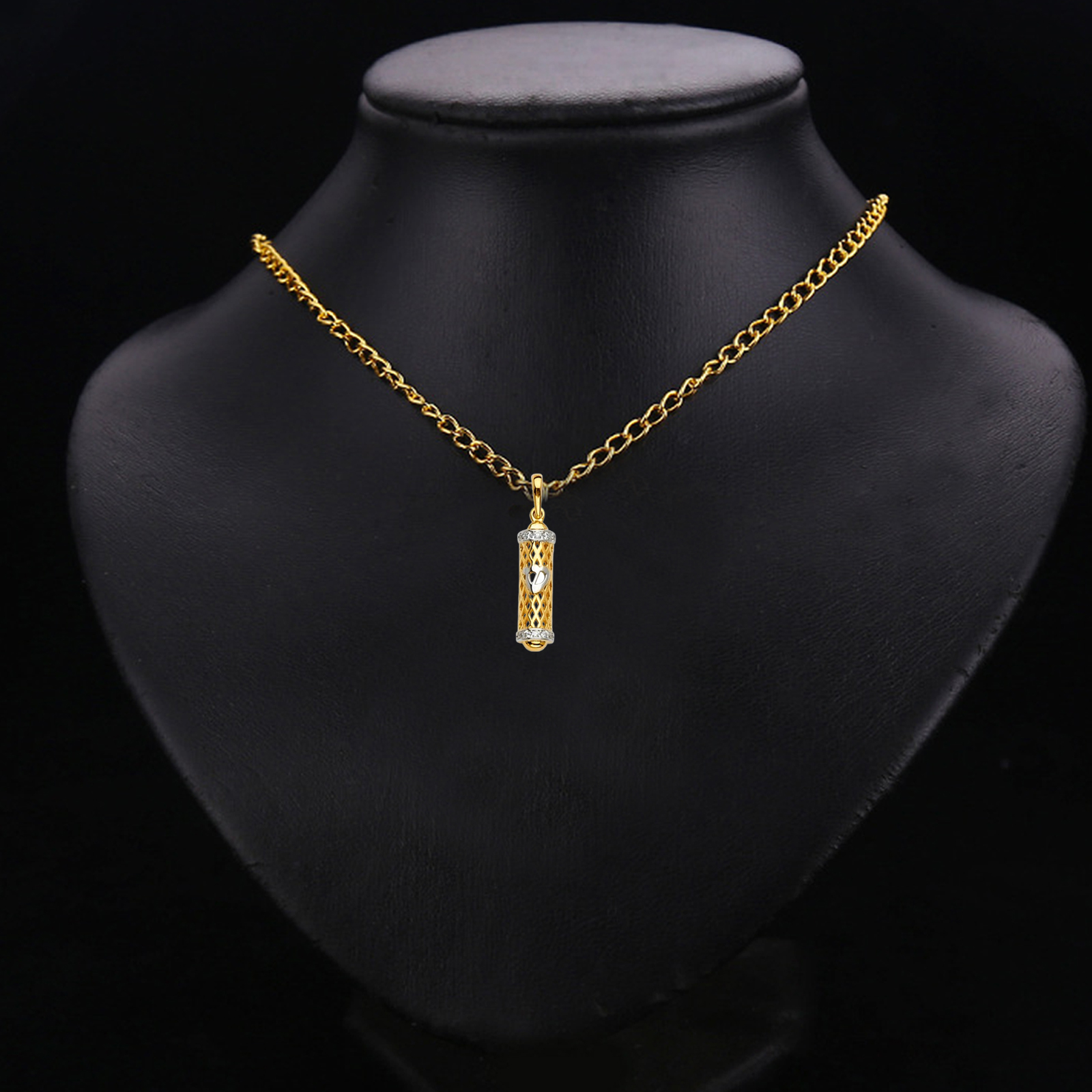 14K Two Tone Gold Mezuzah Pendant