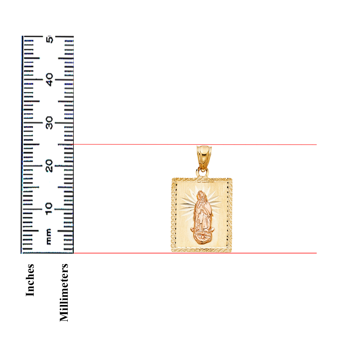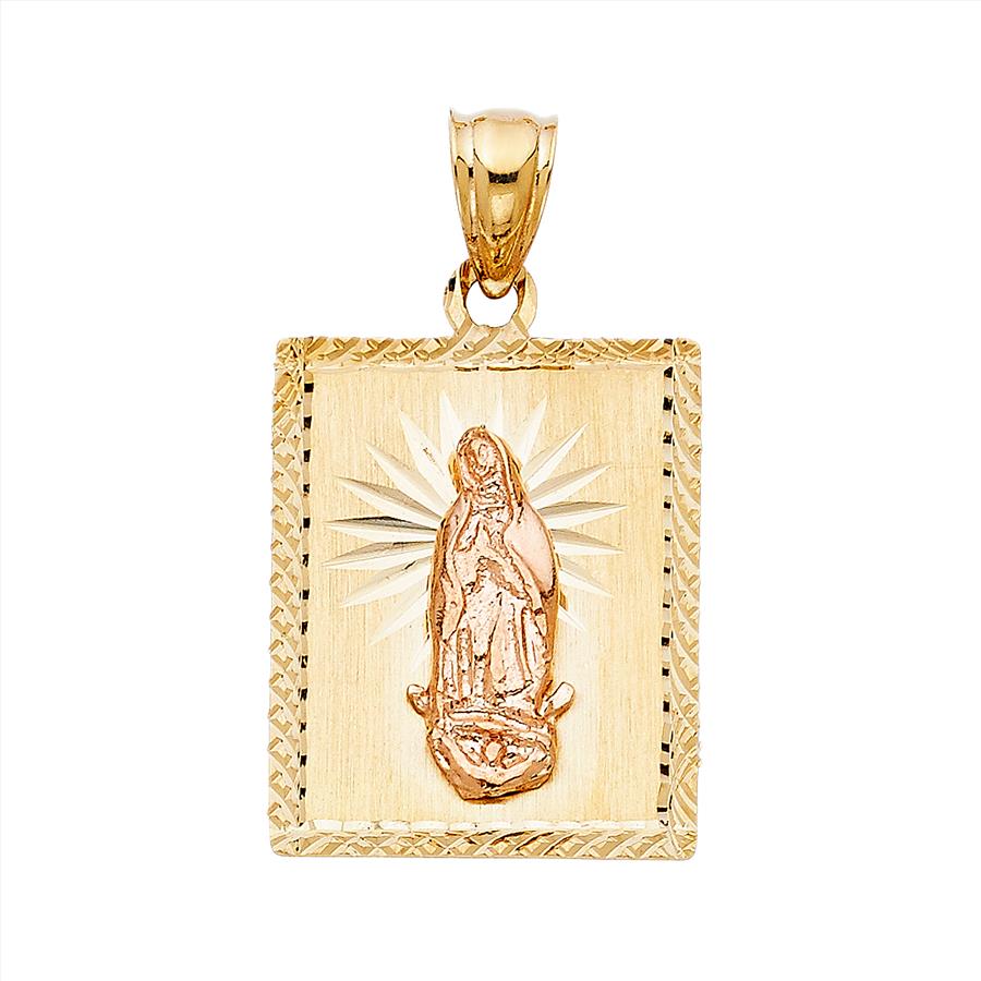 14K Two Tone Rose Yellow Gold Religious Guadalupe Pendant - 25 mm X 21 mm