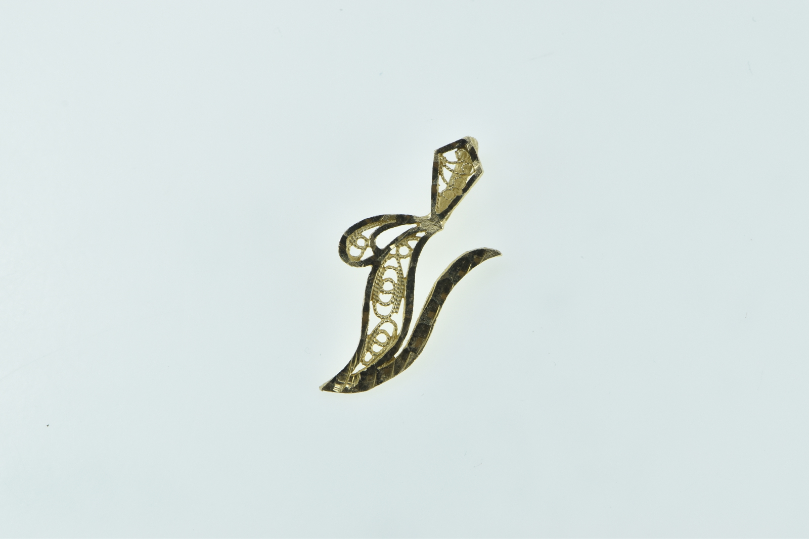 Item:  14K V Cursive Monogram Letter Name Yellow Gold Charm/Pendant