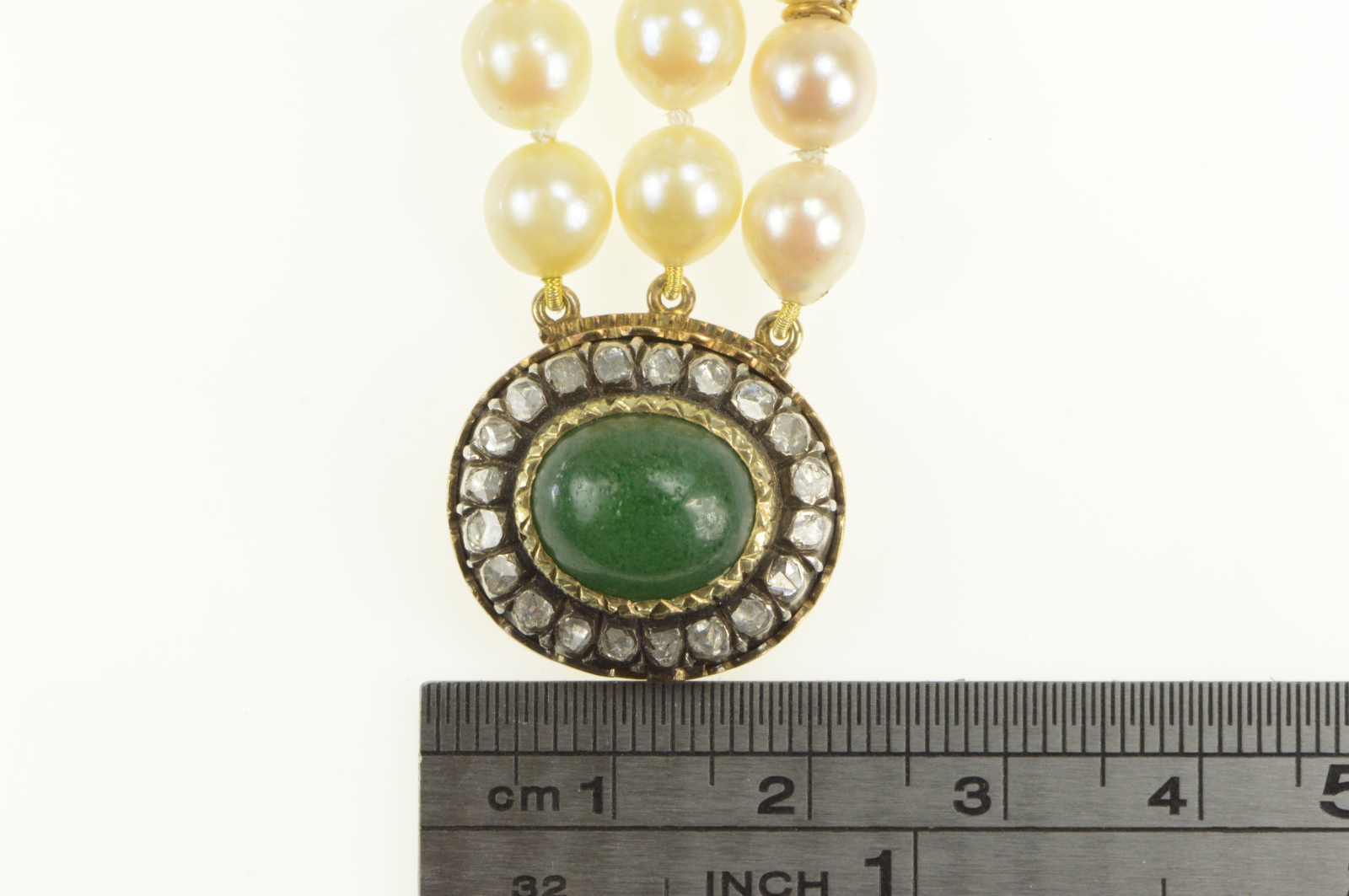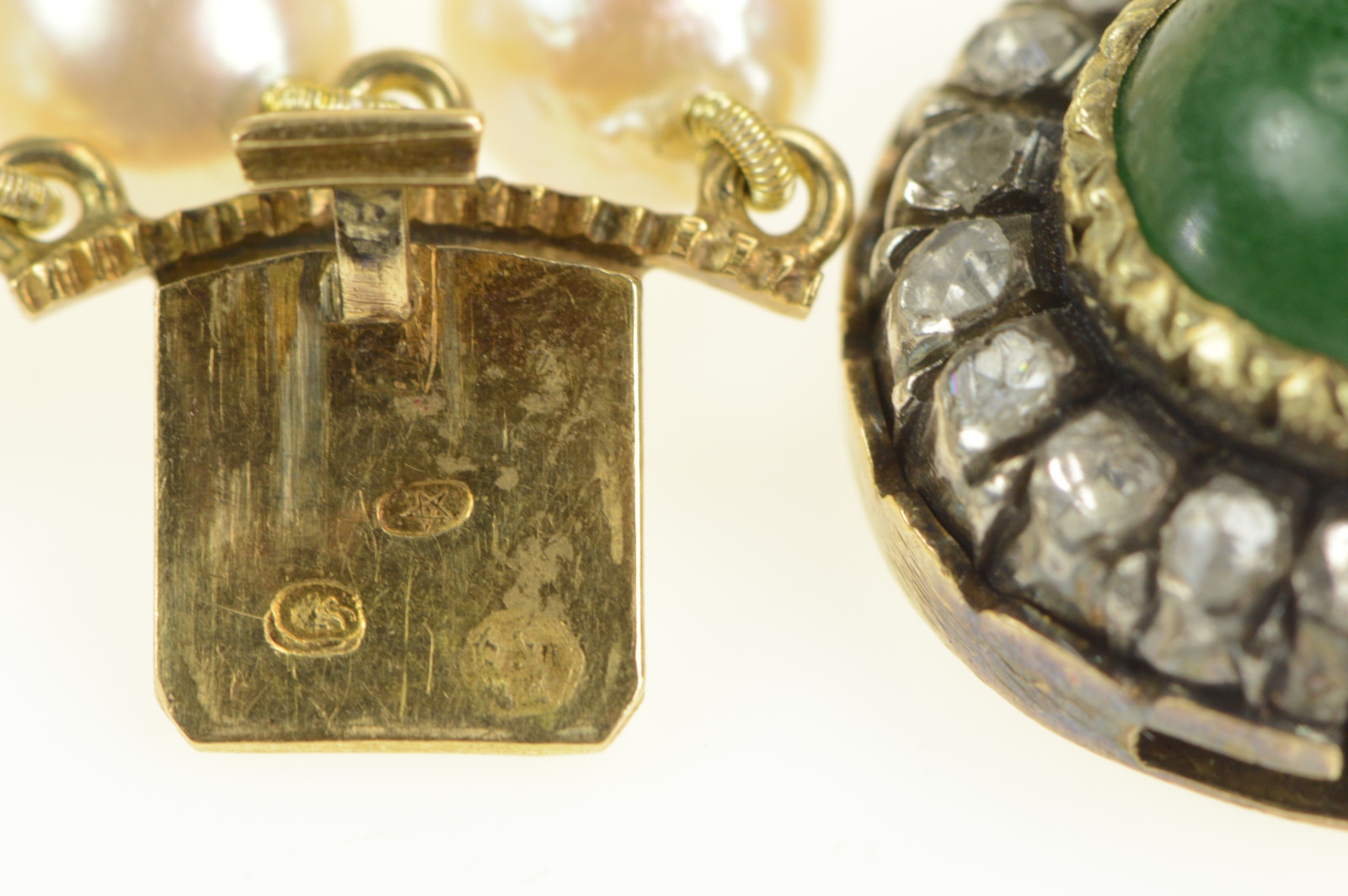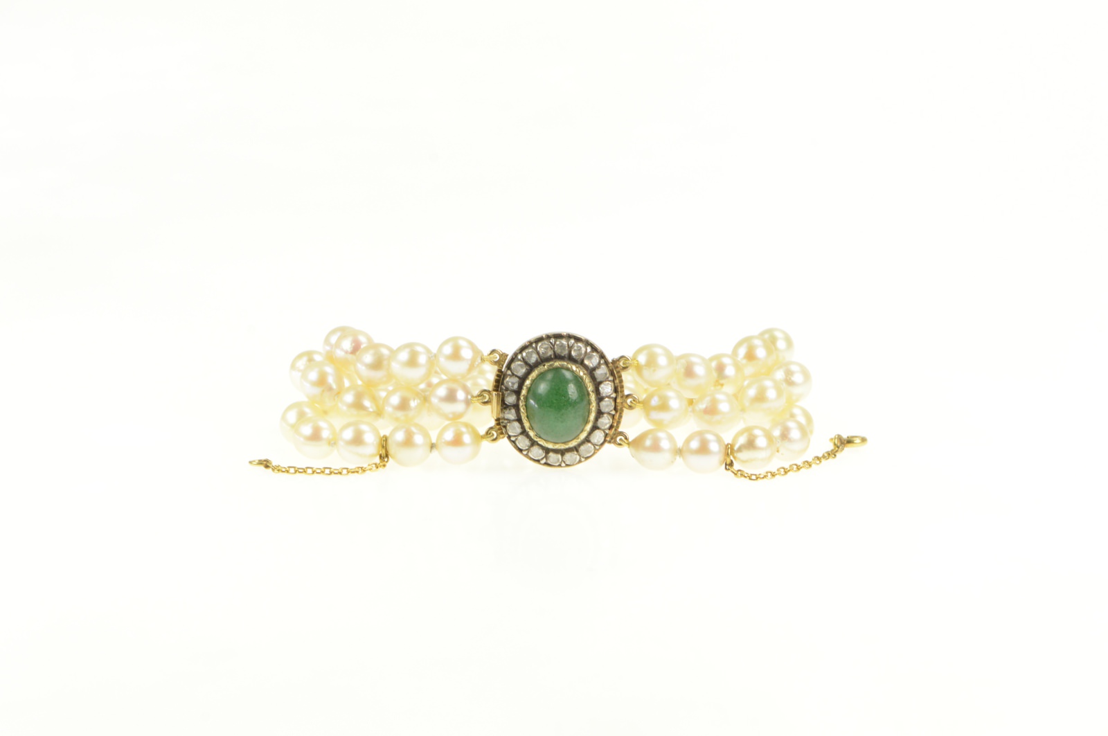 Item:  14K Victorian English Pearl Rose Cut Diamond Nephrite Yellow Gold Bracelet 7"
