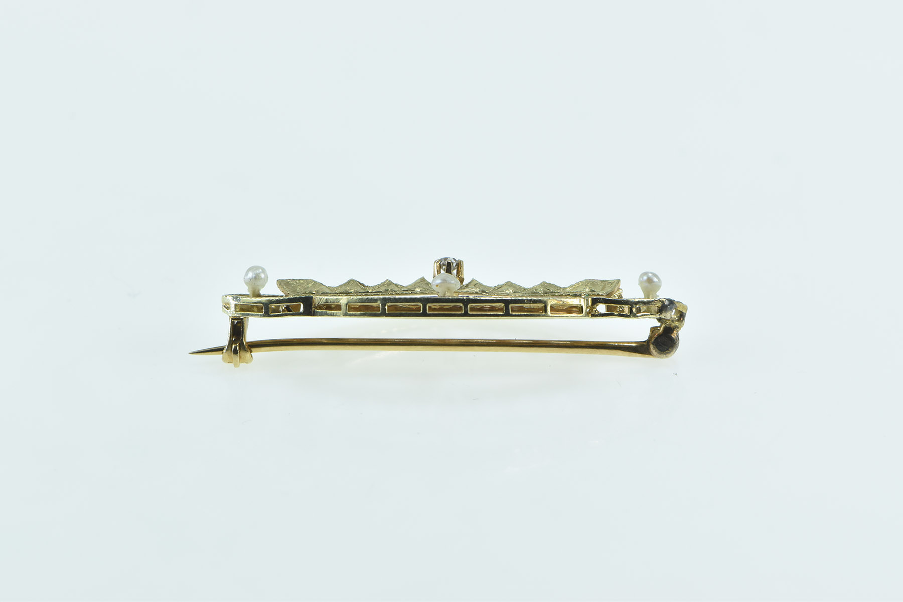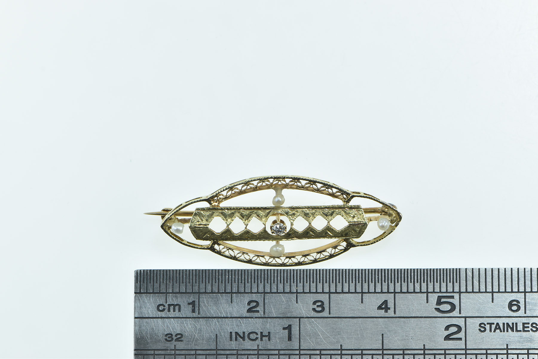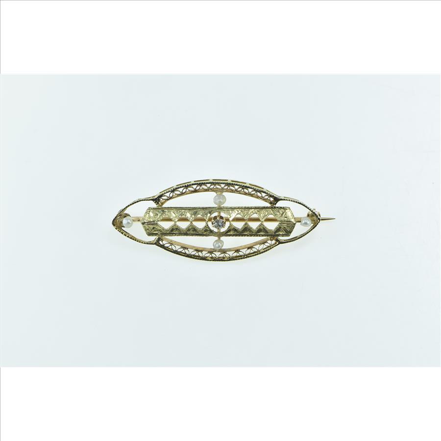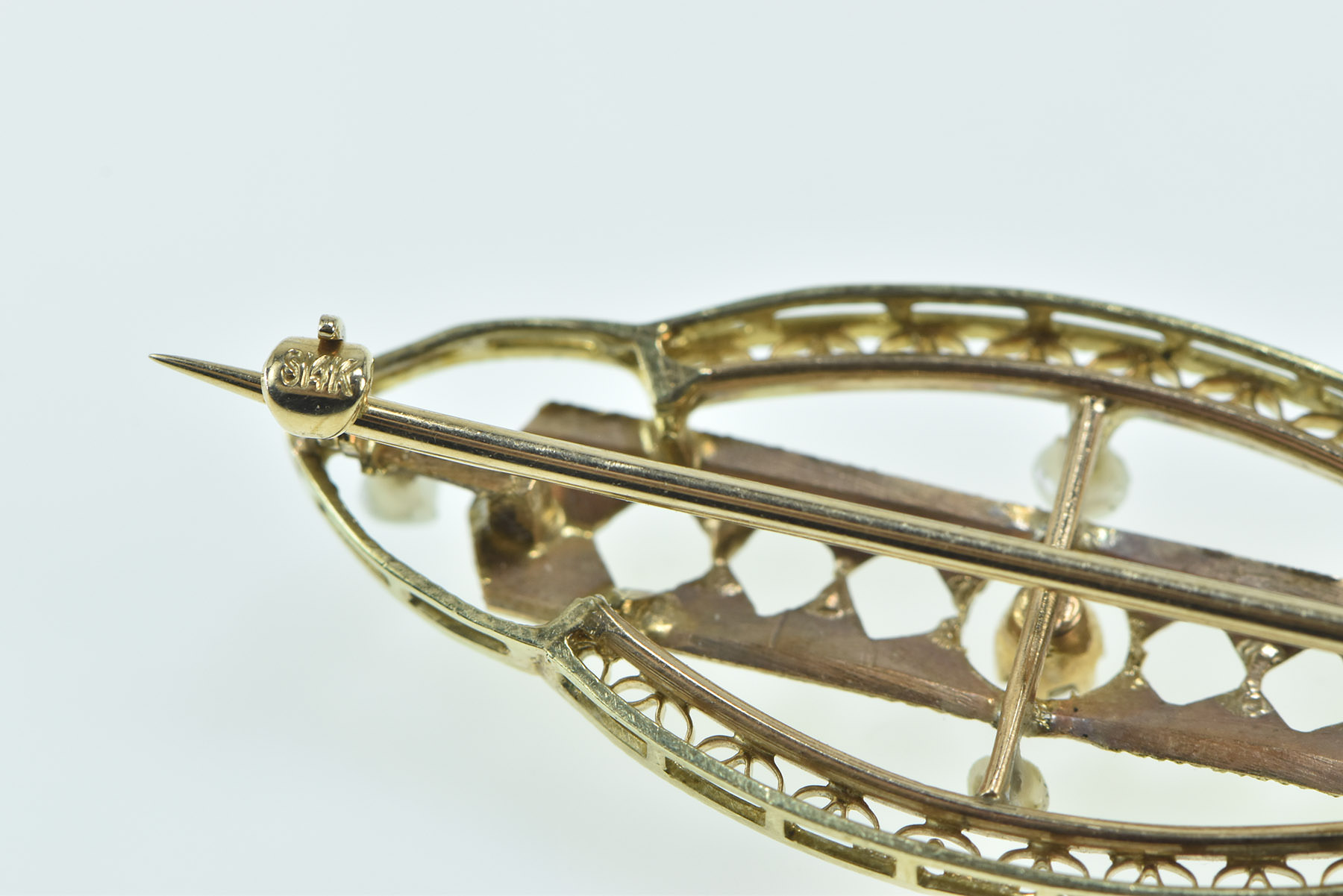 14K Victorian Filigree Ornate Seed Pearl Oval Yellow Gold Pin/Brooch
