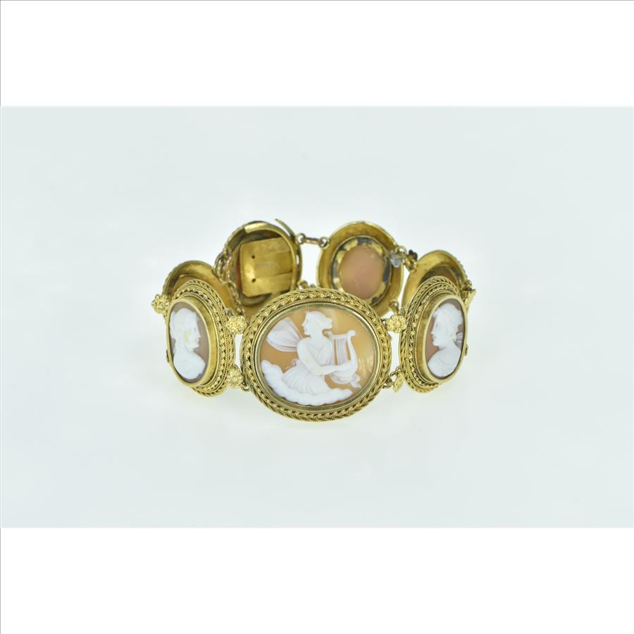 Item:  14K Victorian Hand Carved Cameo Romanesque Ladies Yellow Gold Bracelet 7"