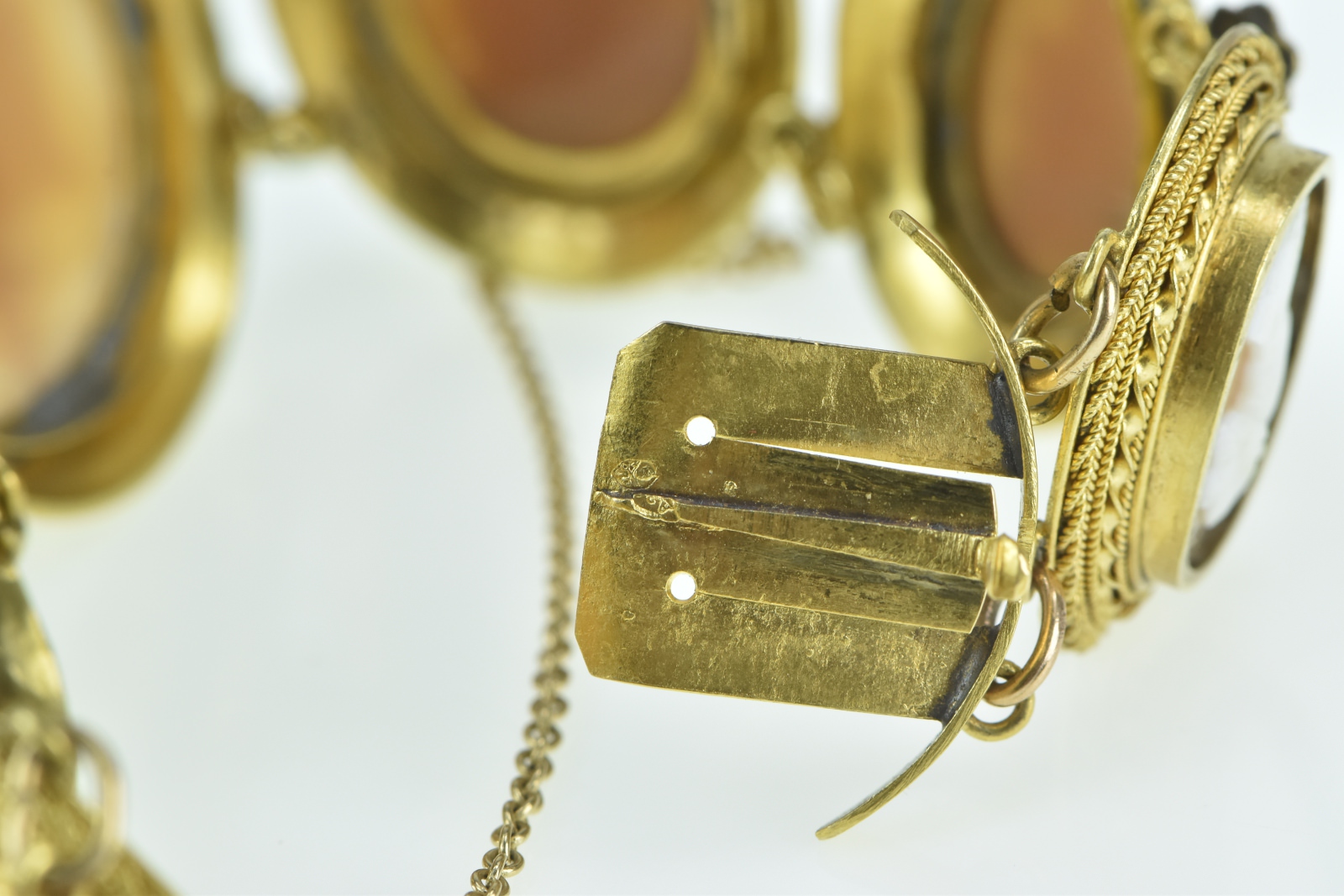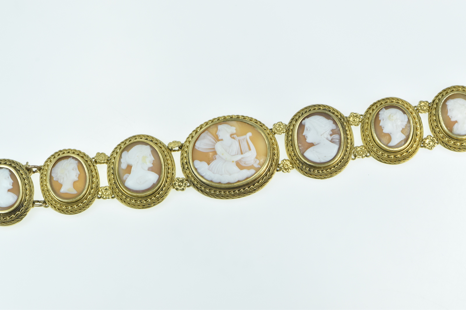 14K Victorian Hand Carved Cameo Romanesque Ladies Yellow Gold Bracelet 7"