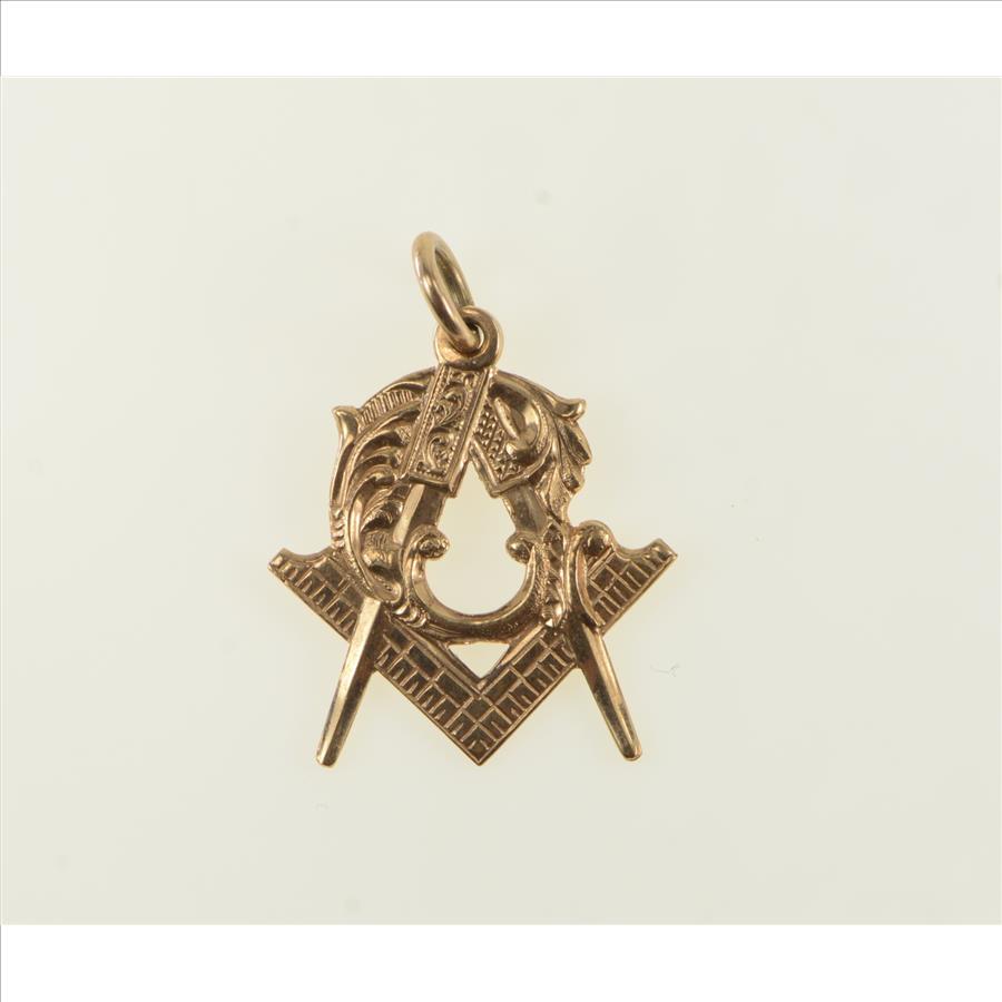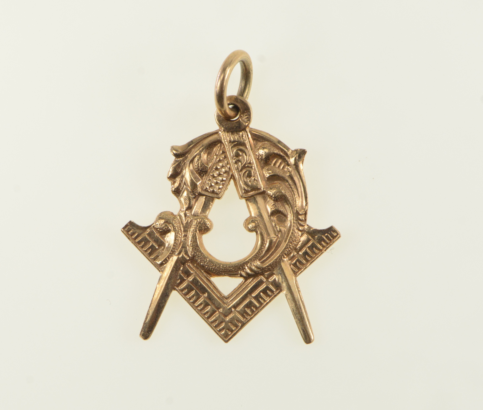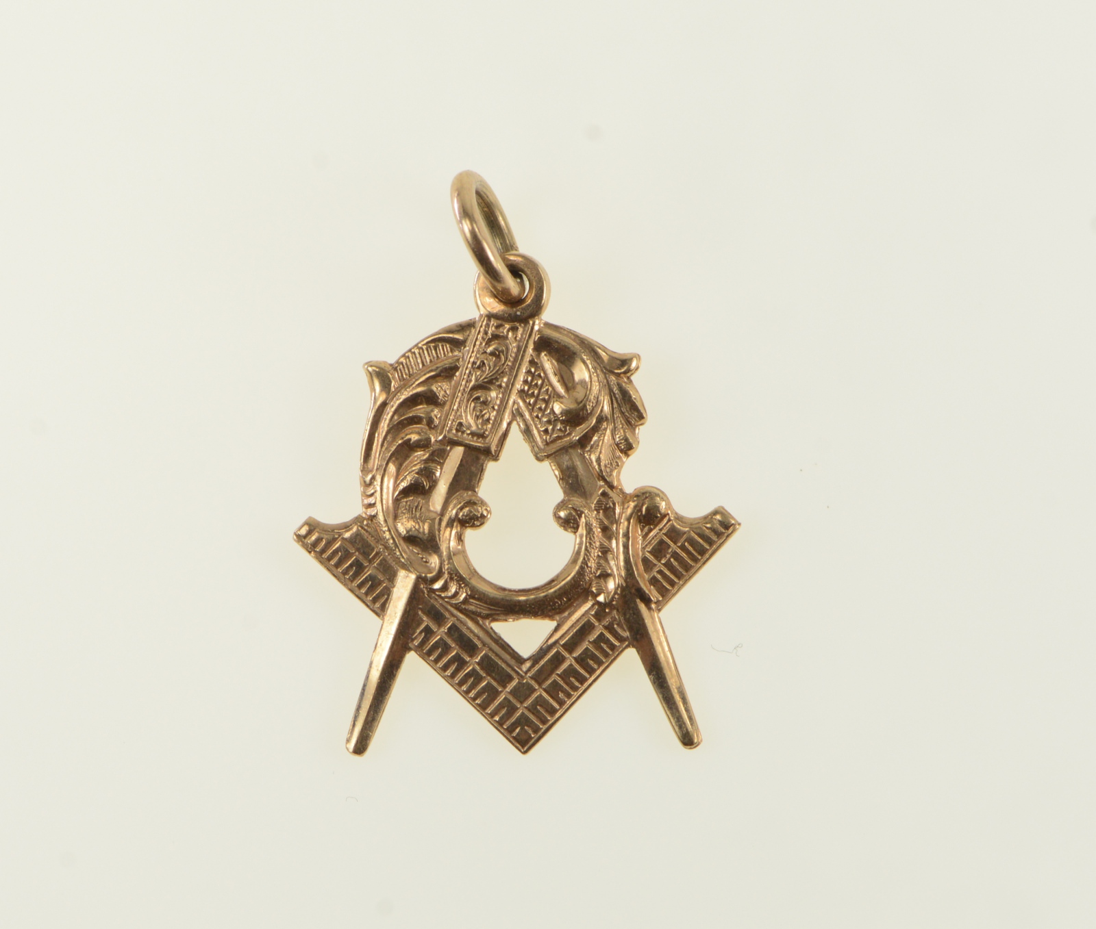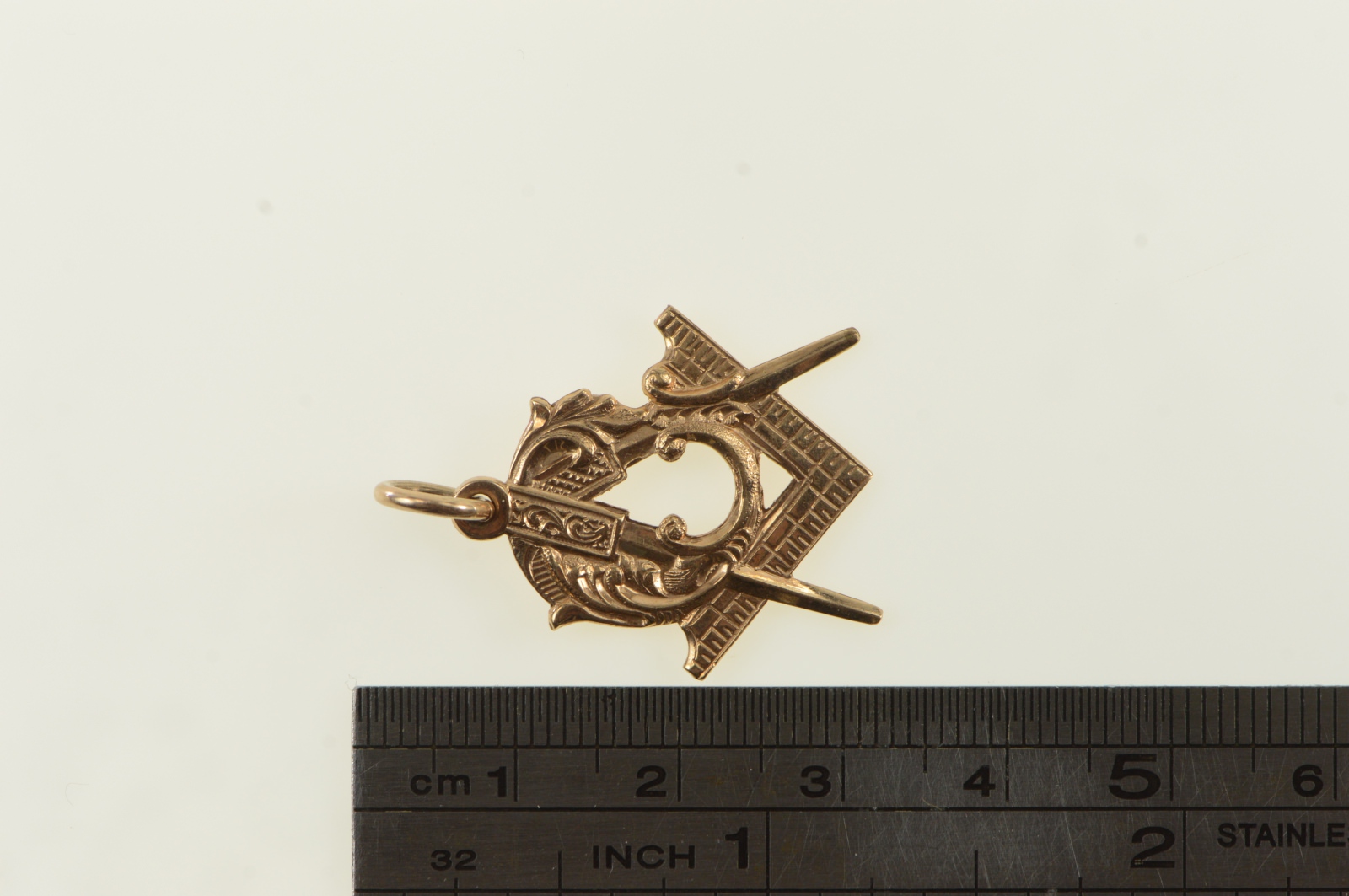 14K Victorian Masonic Compass Square Rose Gold Charm/Pendant