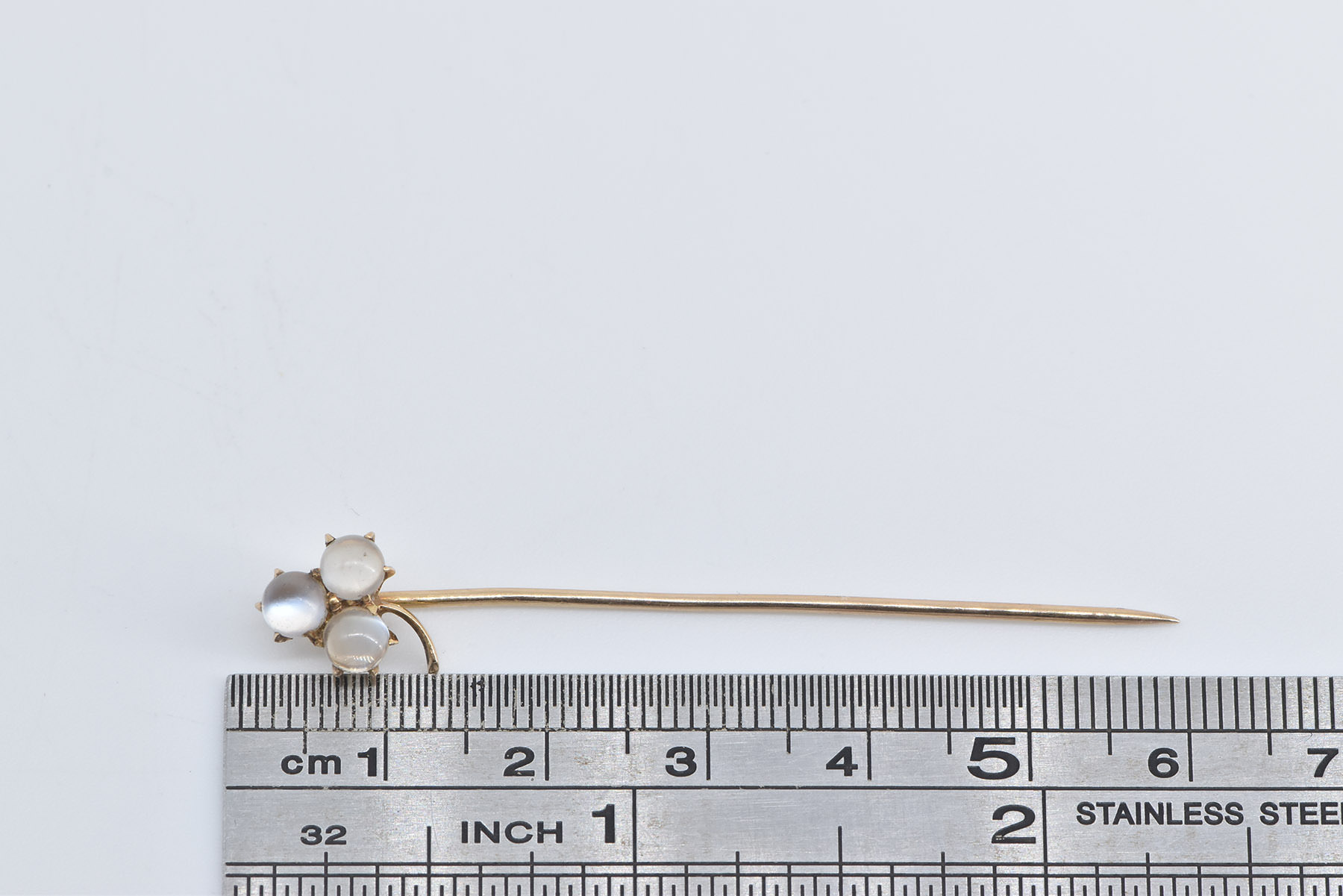 14K Victorian Moonstone Clover Shamrock Yellow Gold Stick Pin