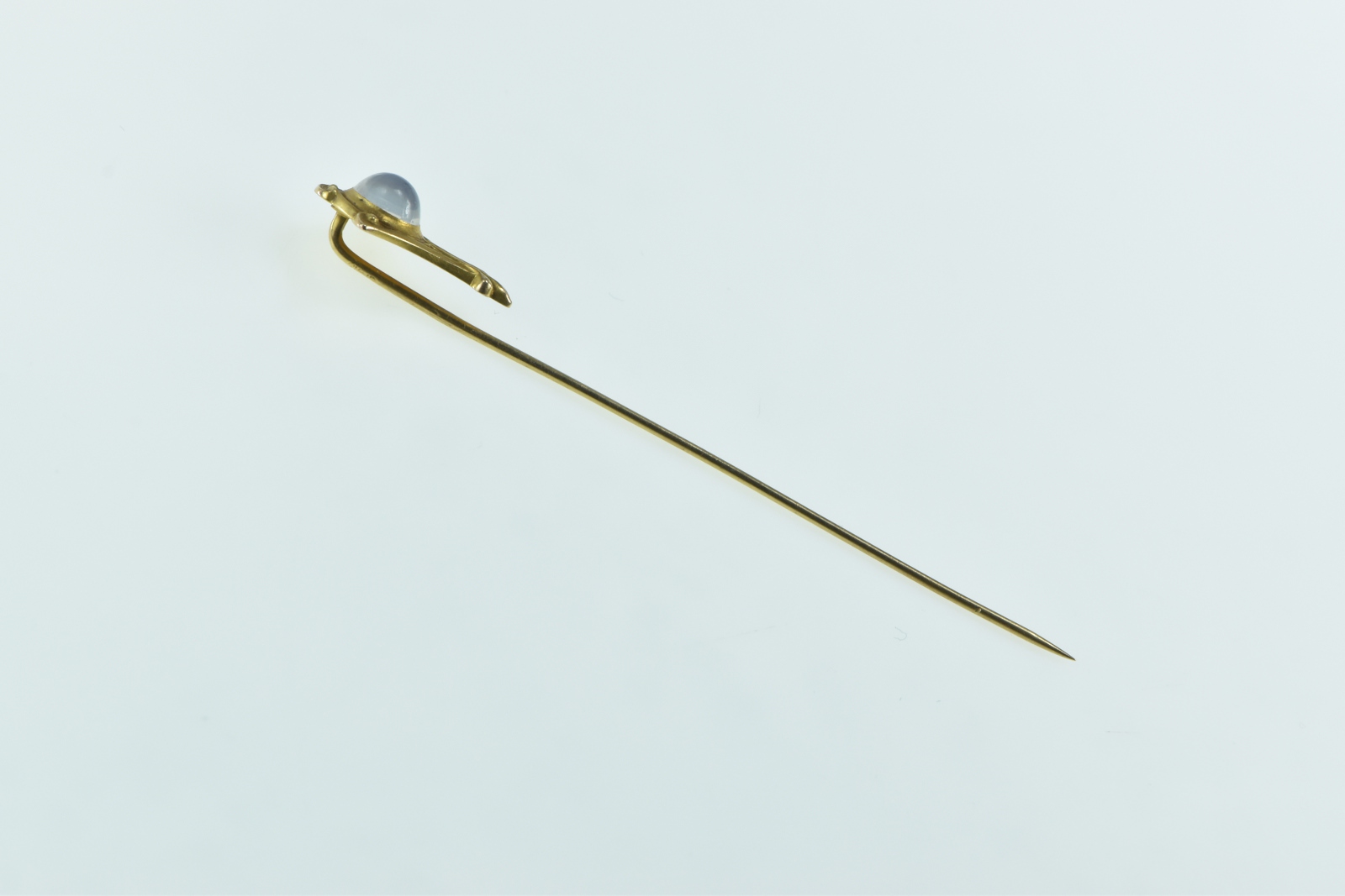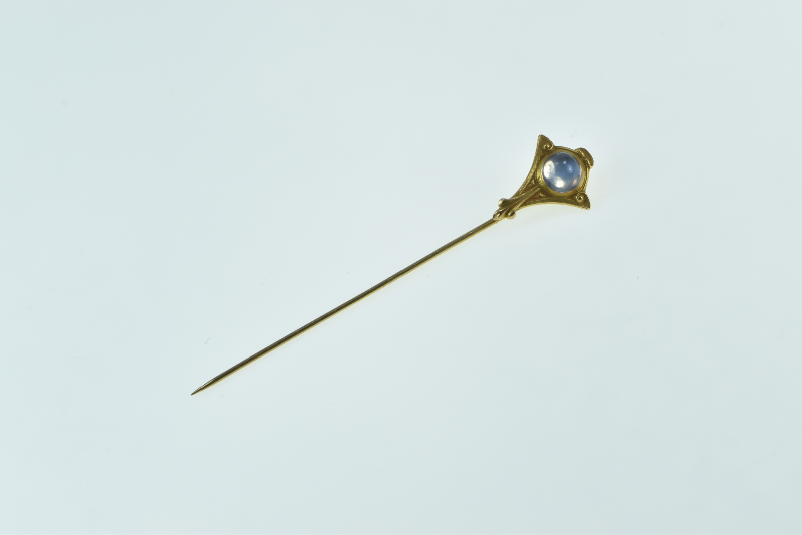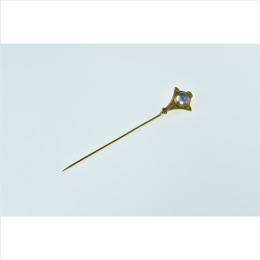 Item:  14K Victorian Ornate Moonstone Scroll Design Yellow Gold Stick Pin