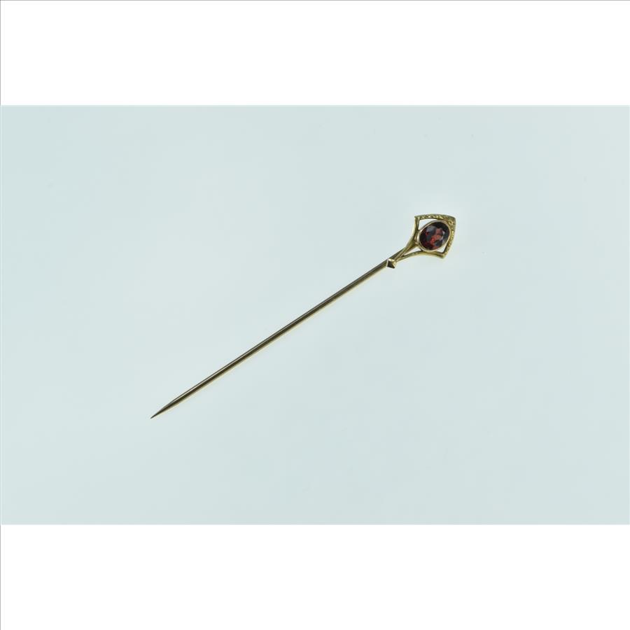 Item:  14K Victorian Oval Garnet Vintage Ornate Yellow Gold Stick Pin