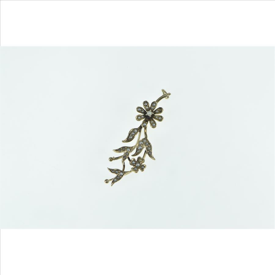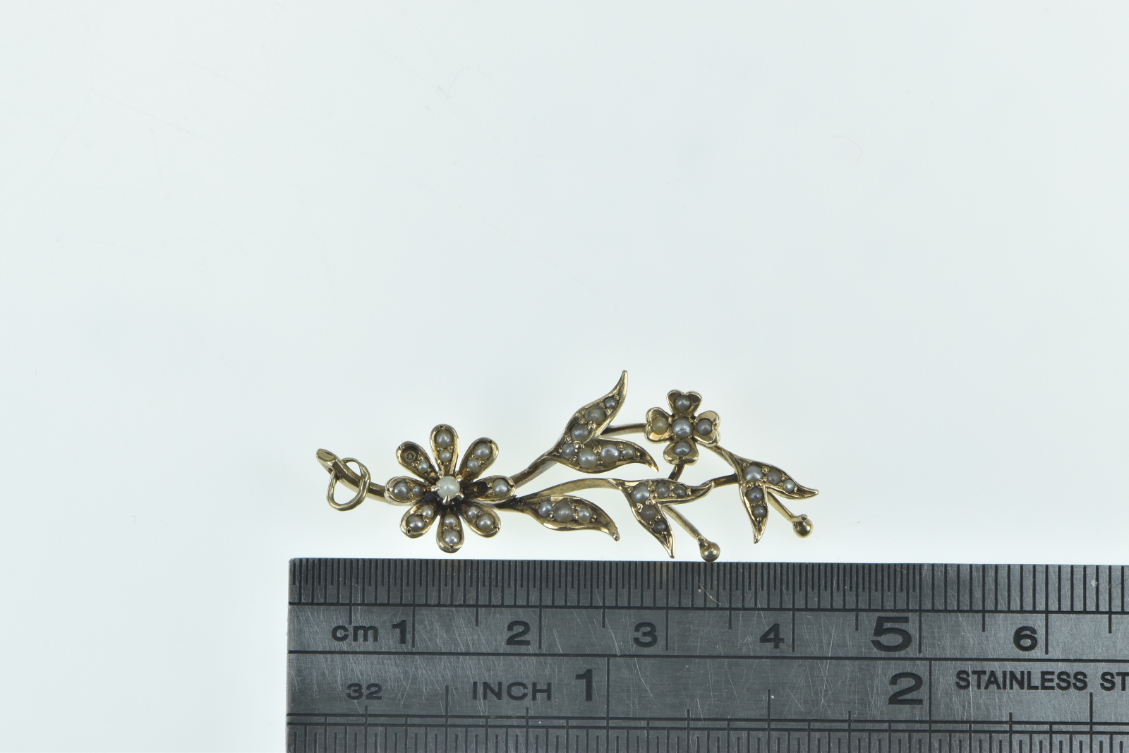 14K Victorian Seed Pearl Flower Floral Ornate Yellow Gold Pendant