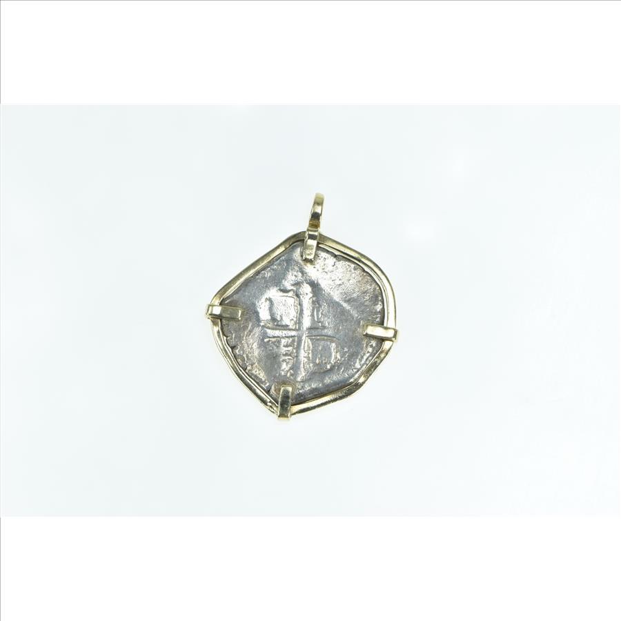 14K Vintage Spanish Silver Shipwreck Coin Yellow Gold Charm/Pendant