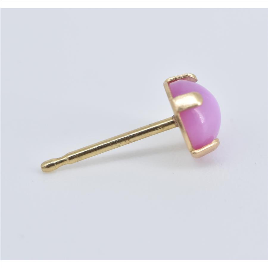 Item:  14K Vintage Syn. Pink Sapphire Single Stud Yellow Gold Earring