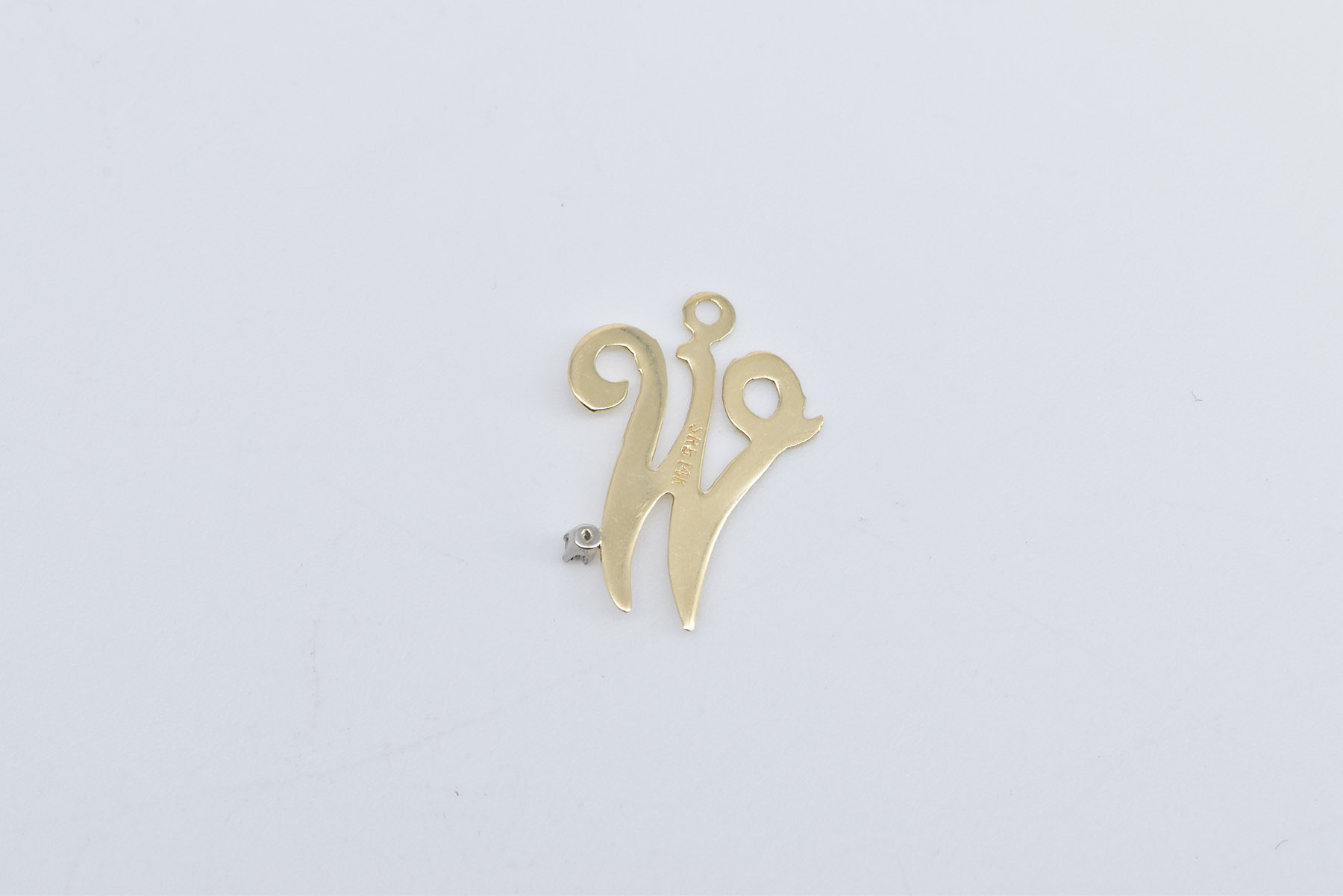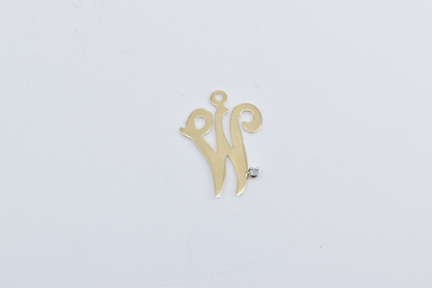 14K W Letter Monogram Initial Name White Sapphire Yellow Gold Charm/Pendant