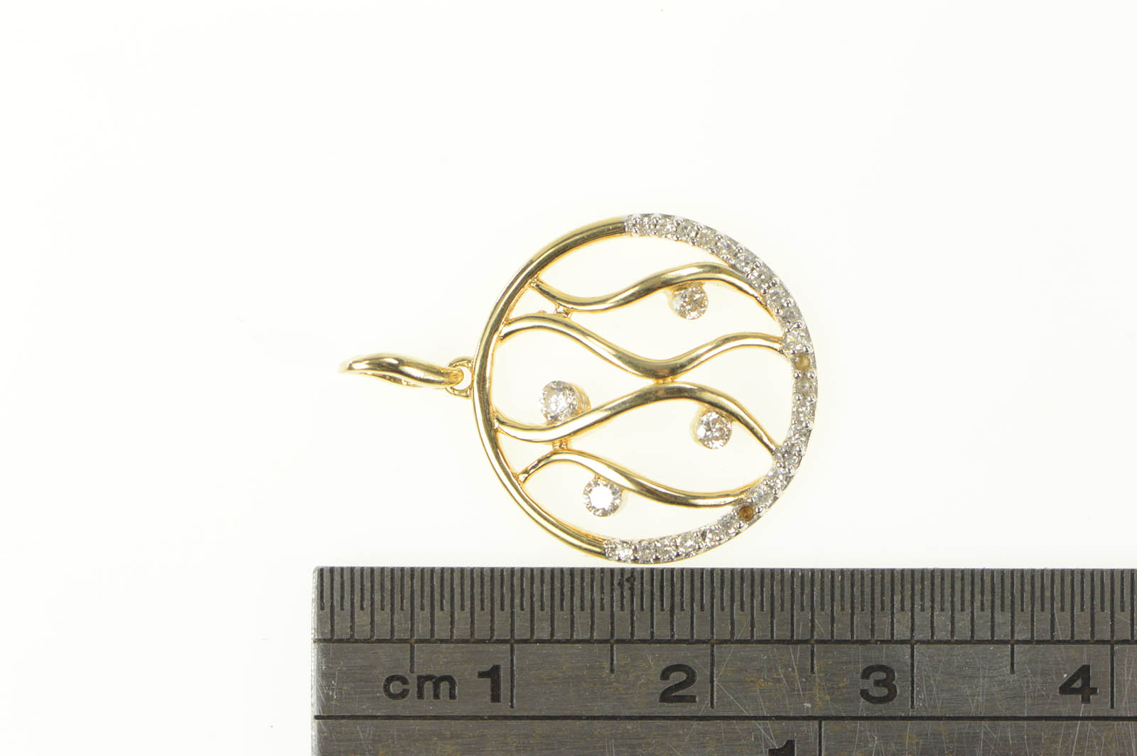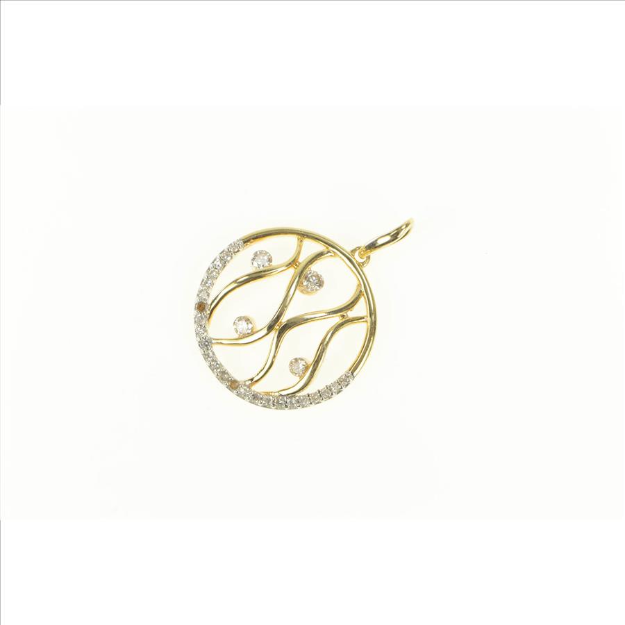 Item:  14K Wavy Curvy Diamond Circle Statement Yellow Gold Pendant