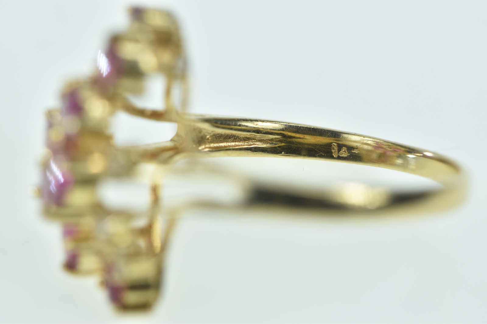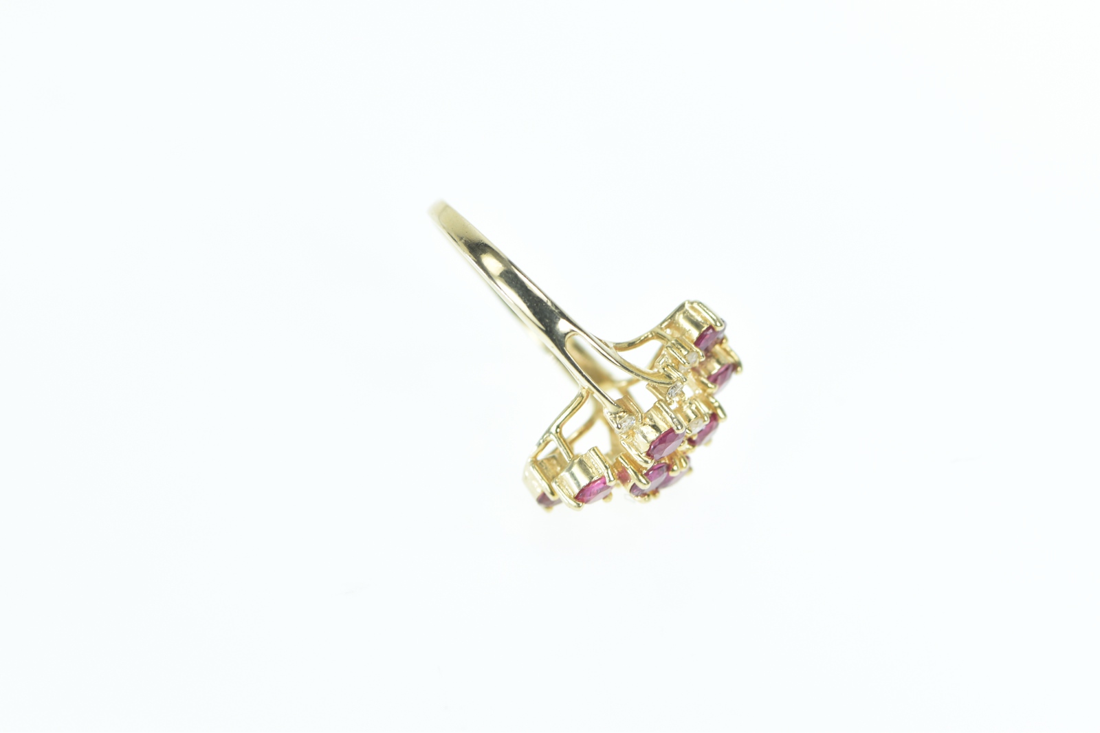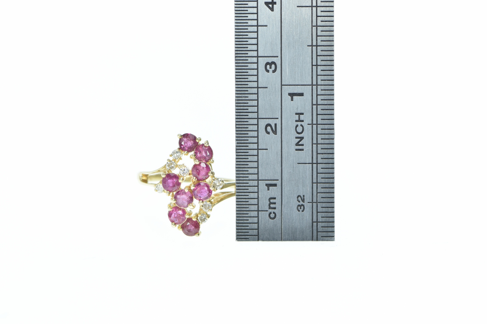 14K Wavy Ruby Diamond Freeform Cluster Yellow Gold Ring, Size 5.5