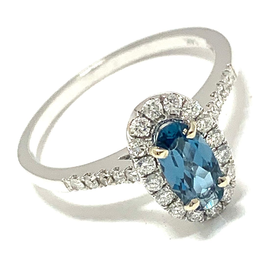 14K White Gold 1.30ctw London Blue Topaz & Genuine Diamond Ring