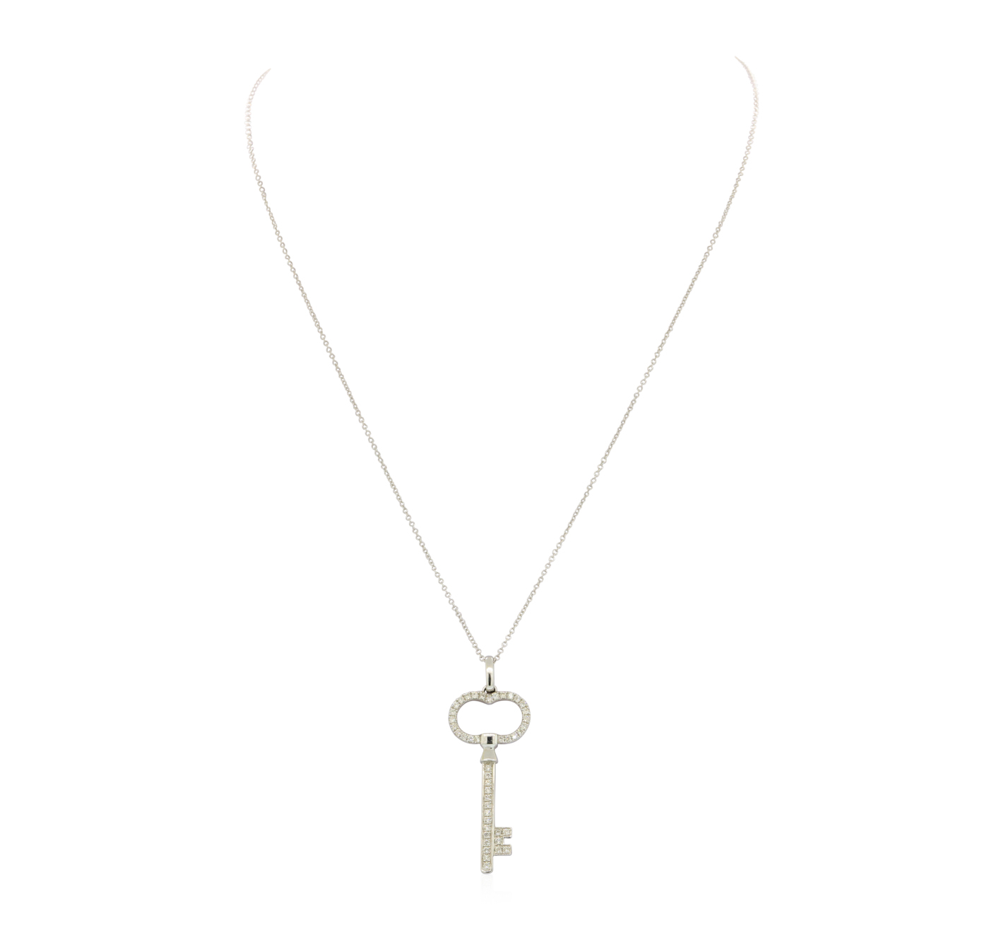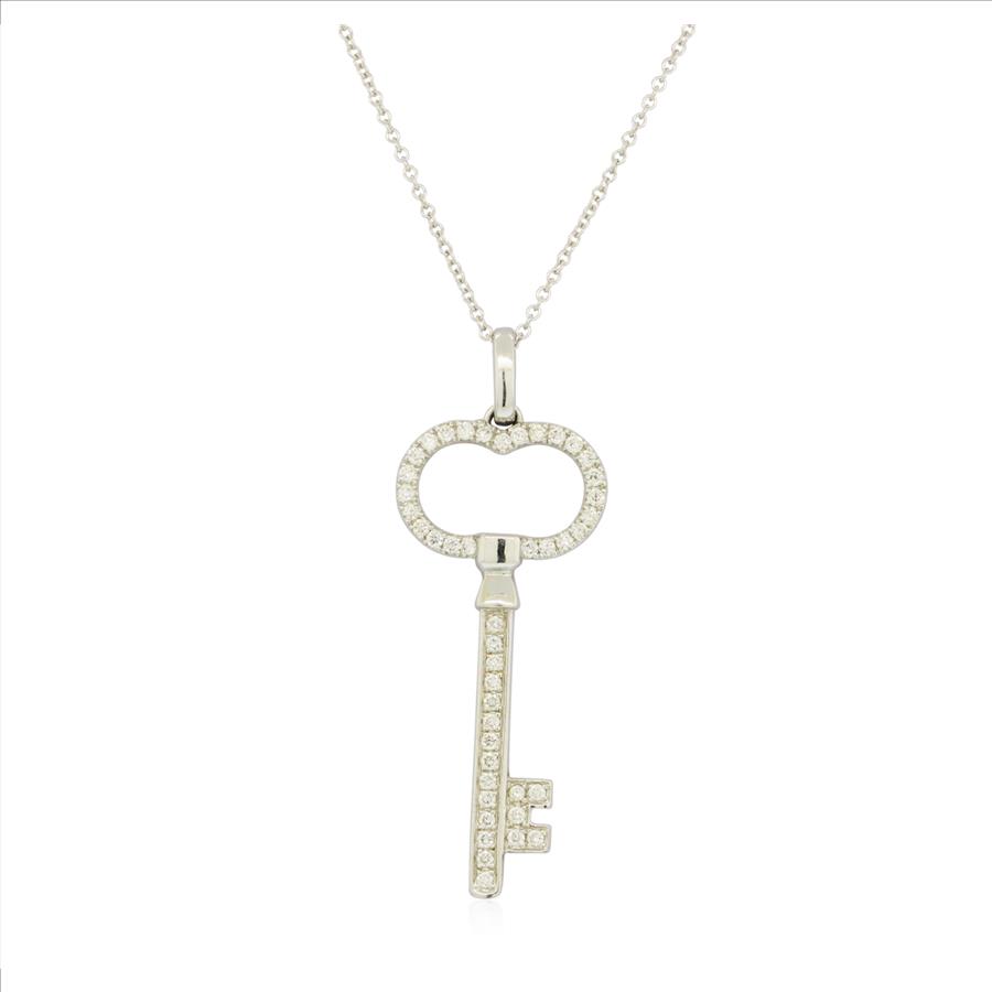 14K White Gold 3.15 Grams Key Design Diamond Pendant With Gold Chain