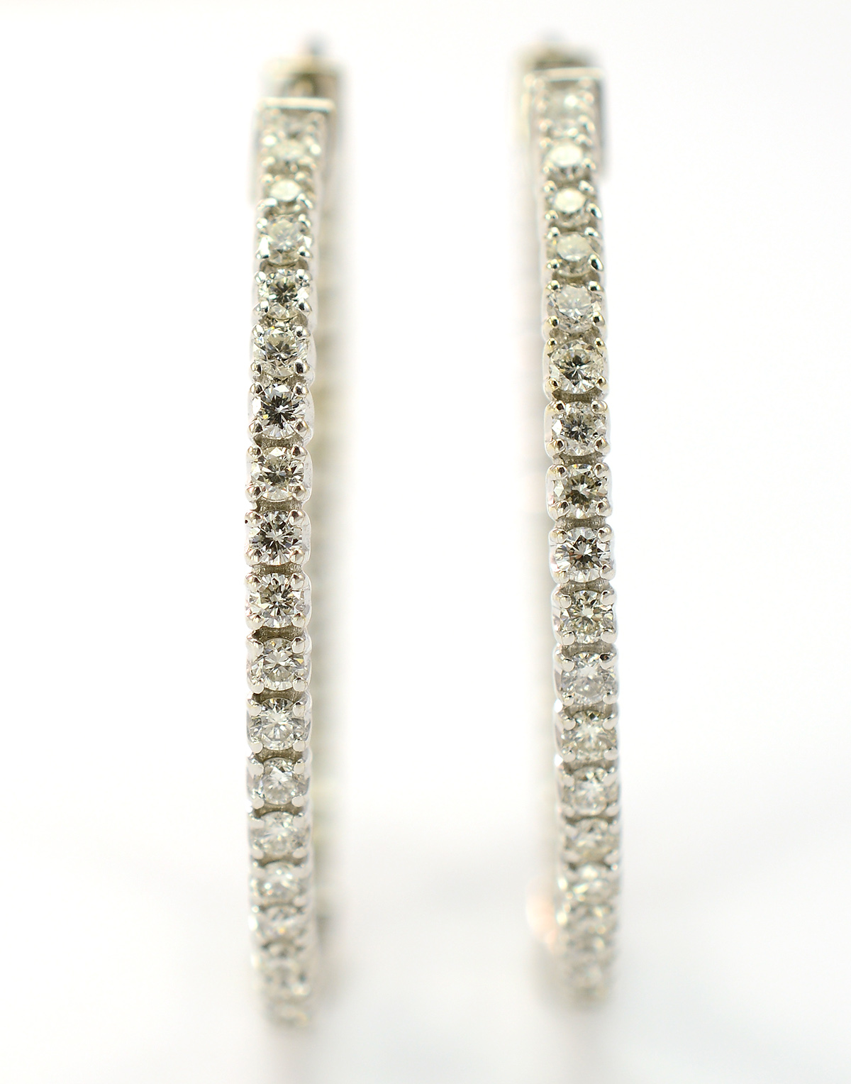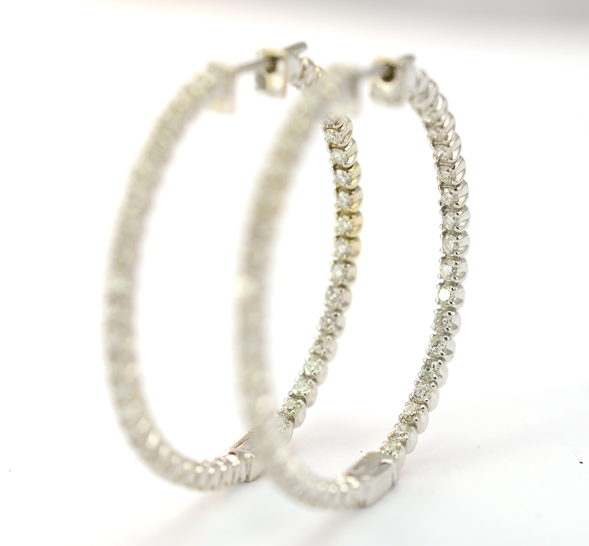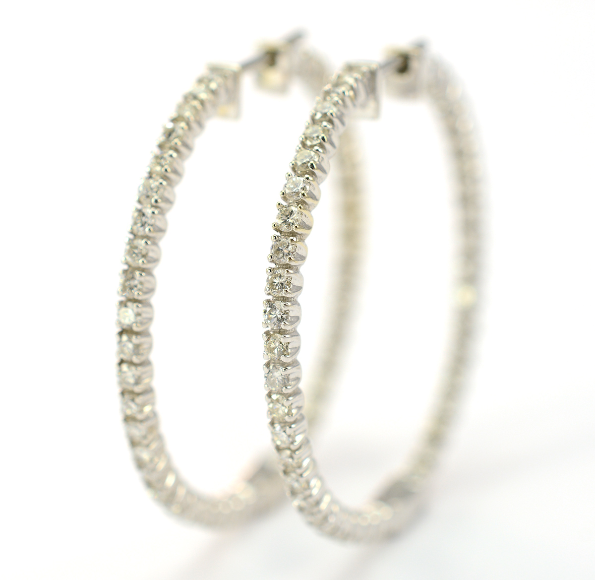 14K White Gold 8.13 Grams 2.00 Carats t.w. Diamond Hoop Earrings