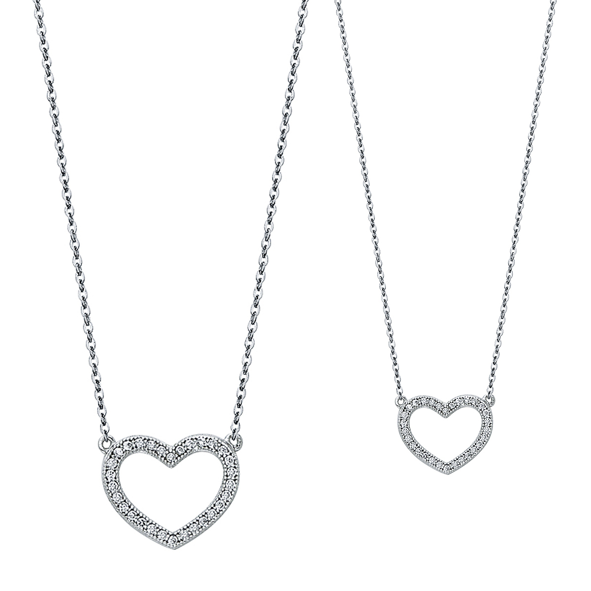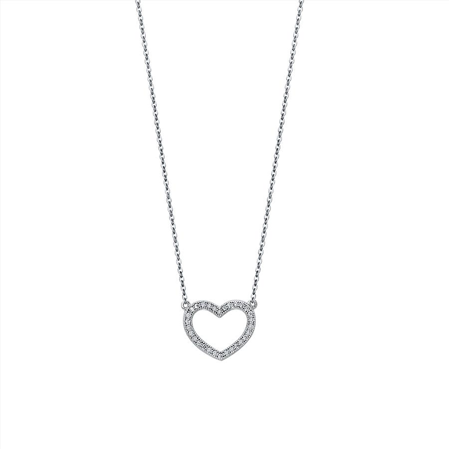 14K White Gold Pave Cubic zirconia Open Necklace - 17+1"