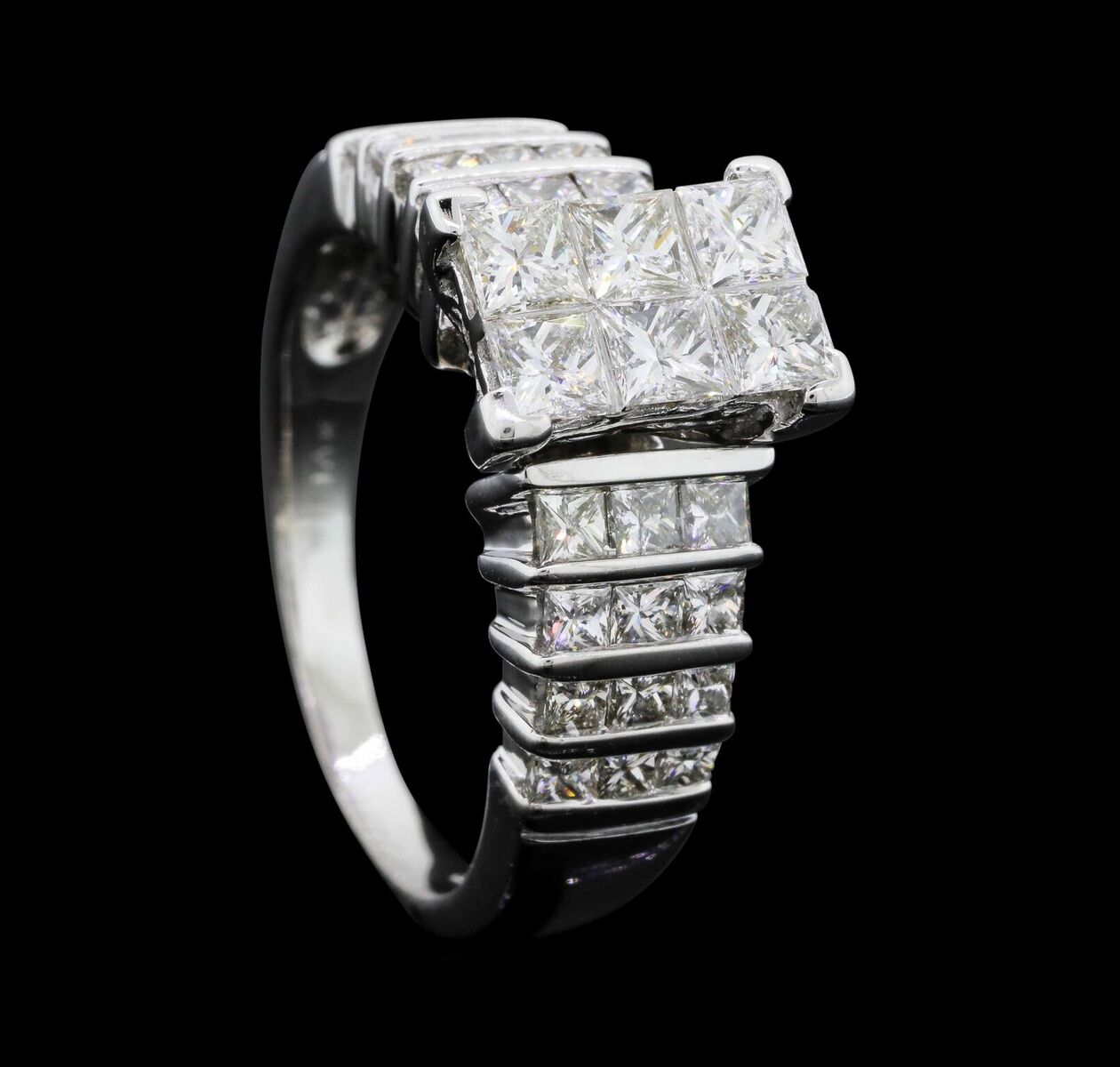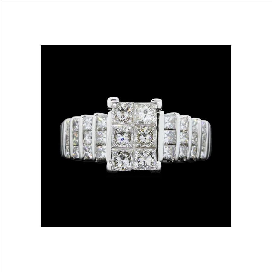 14K White Gold Princess Cut Diamond Ring With Princess Cut Diamond 6 Stone Center