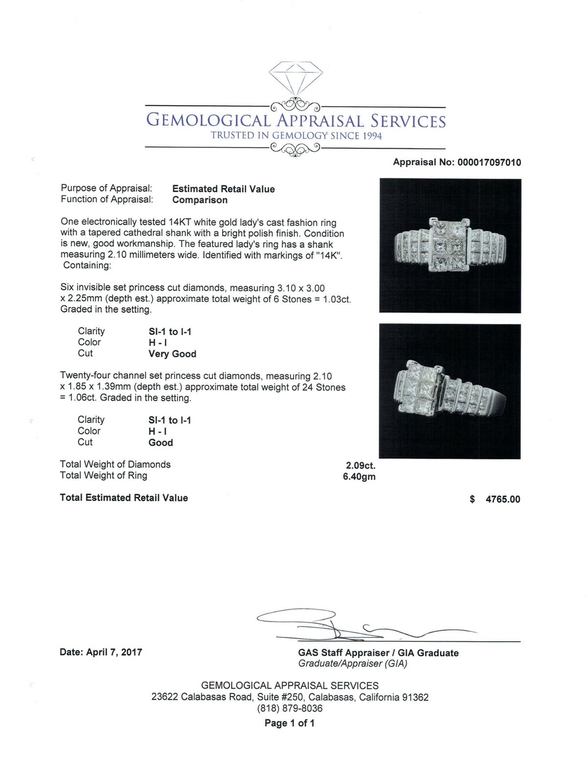 Estimated Retail Value:  $4,765.00 - Third Party Appraisal Included