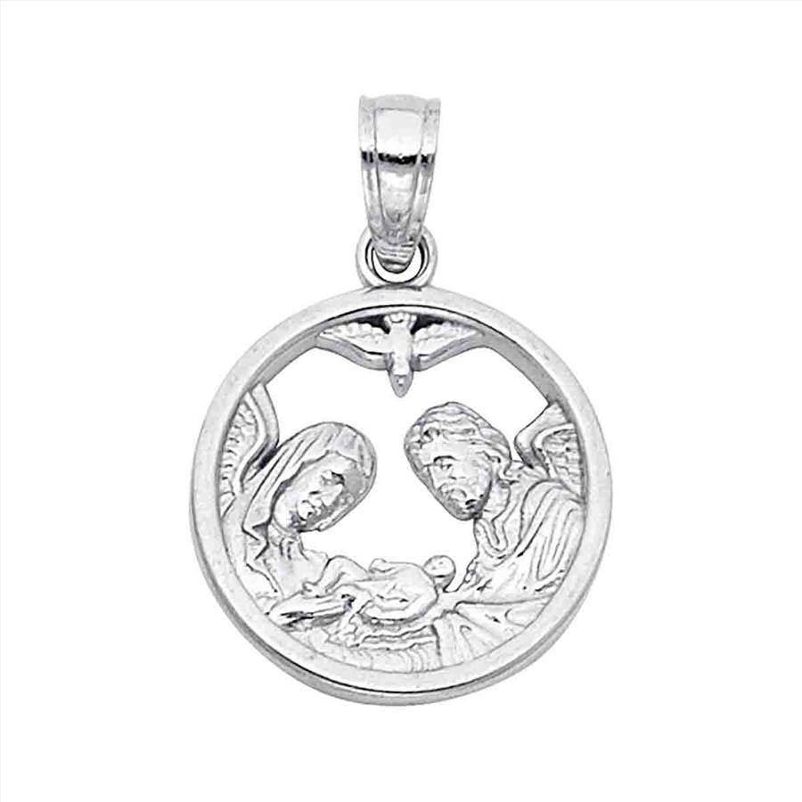 14K White Gold Religious Baptism Pendant - 15 mm X 15 mm