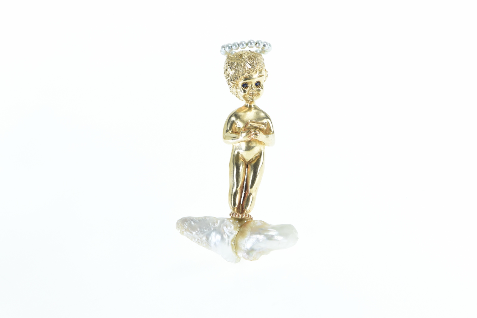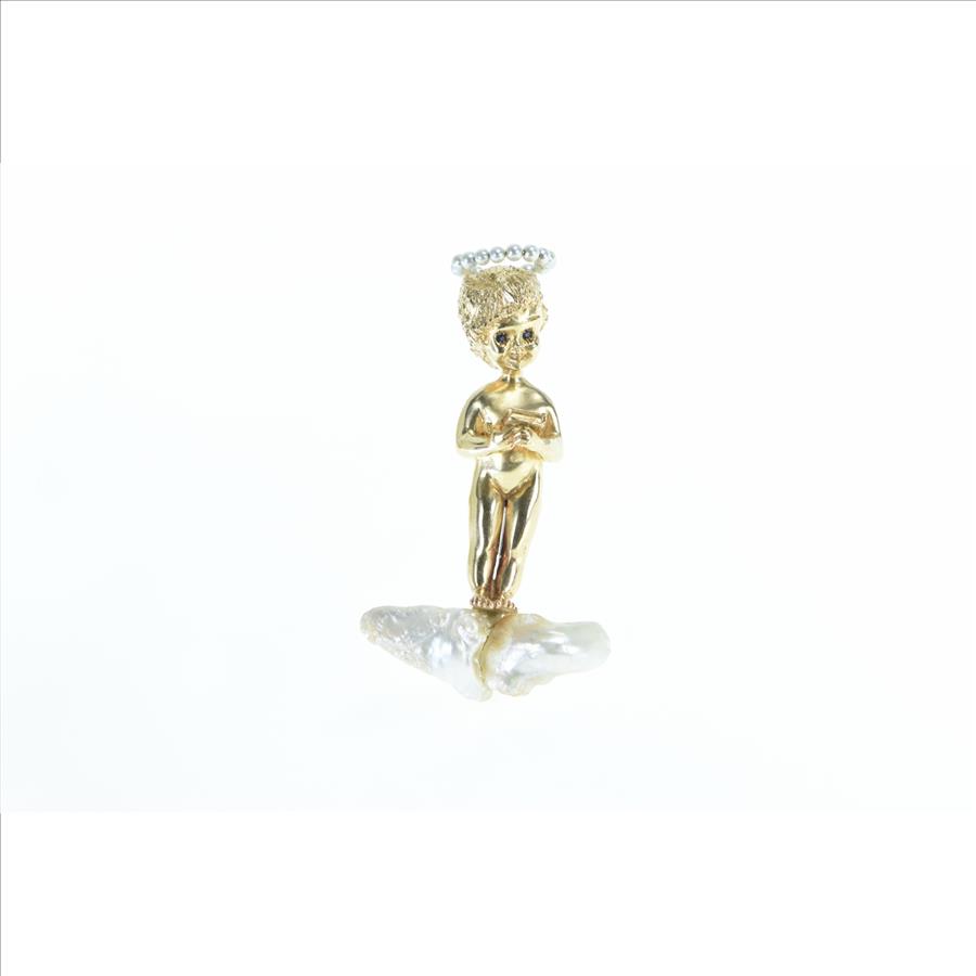 Item:  14K William Ruser Sabbath Child Cherub Yellow Gold Pin/Brooch
