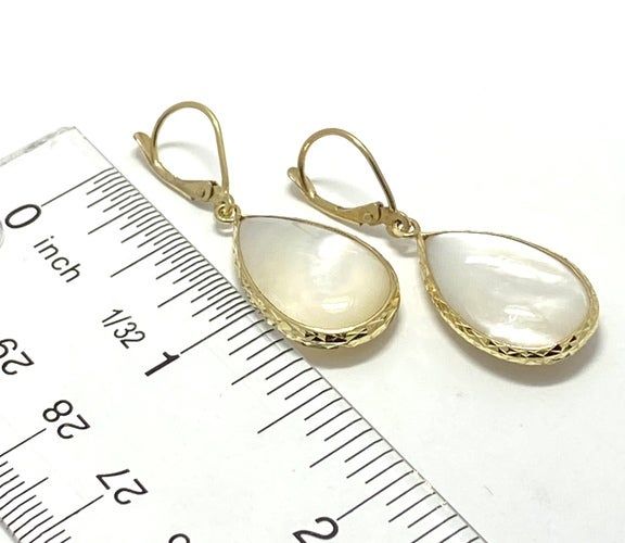 14k Yellow Gold, 1/2"x3/4" Genuine Mother of Pearl Drop Earrings
