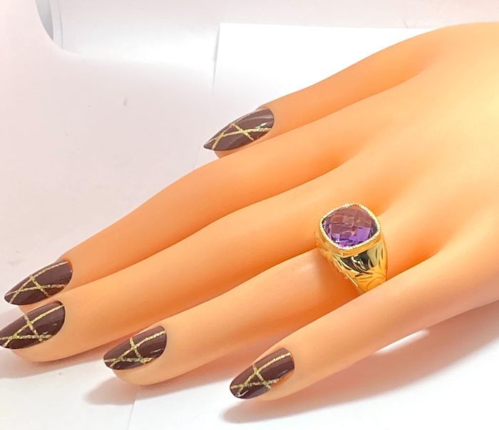14k Yellow Gold, 22.00ctw Natural Amethyst Ring Size 7