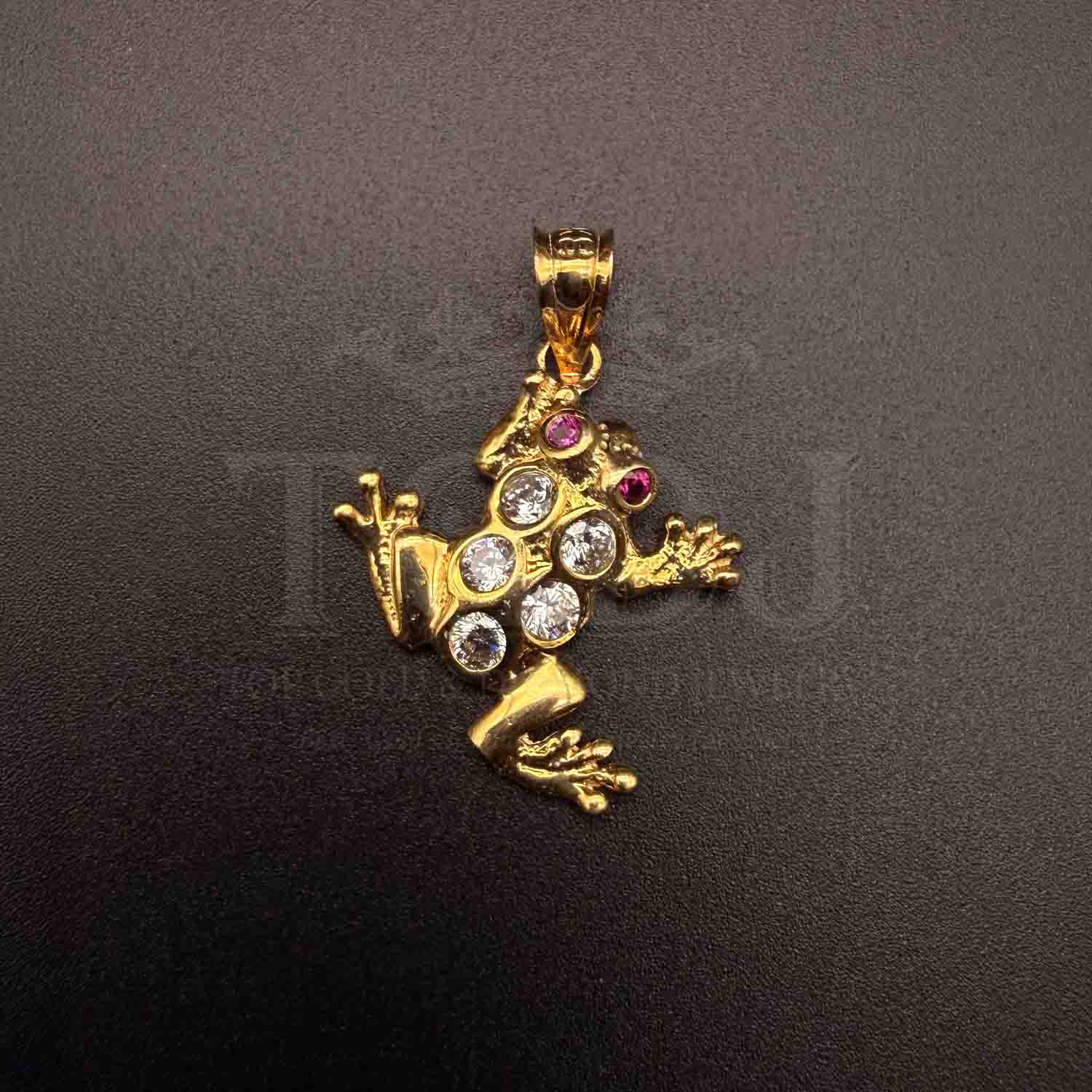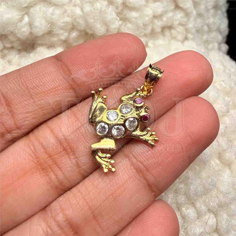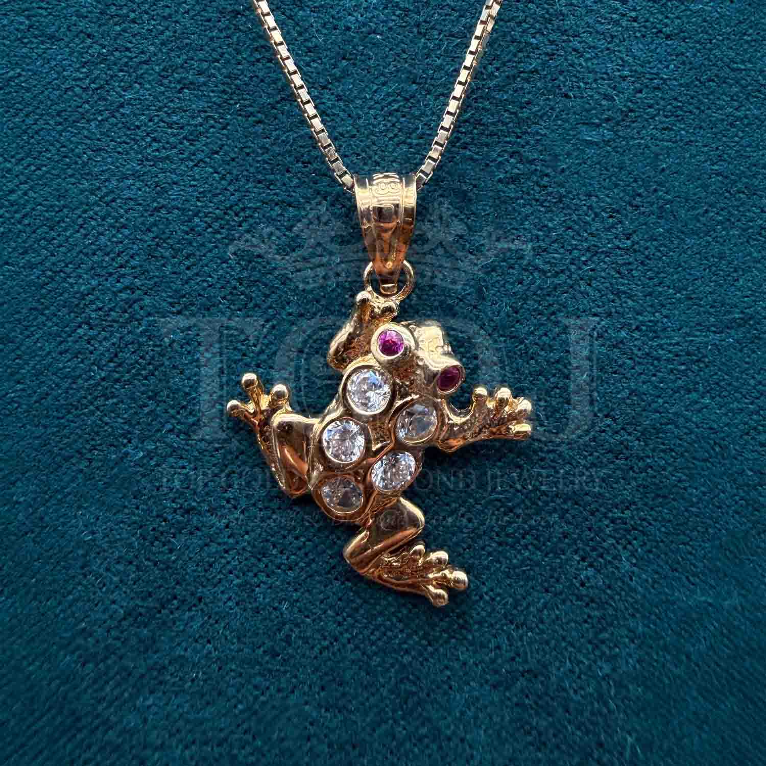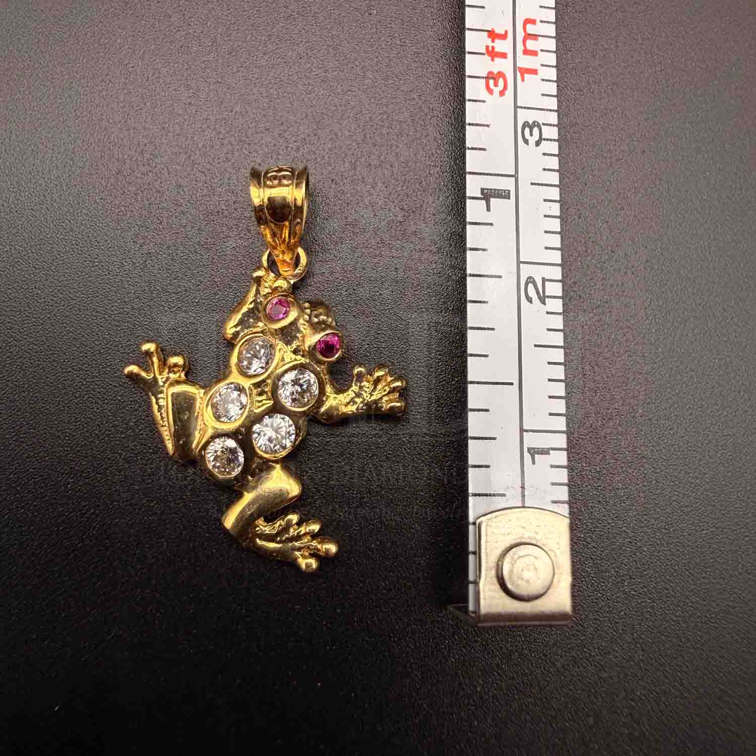 14K Yellow Gold Cubic zirconia Frog Pendant
