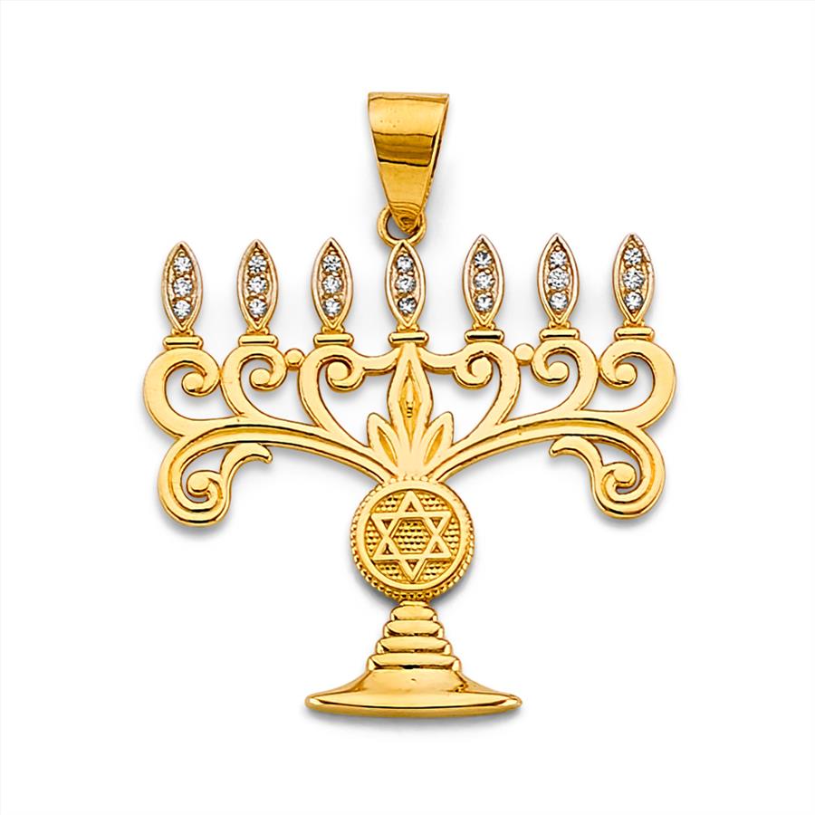 14K Yellow Gold Cubic zirconia Menora Pendant