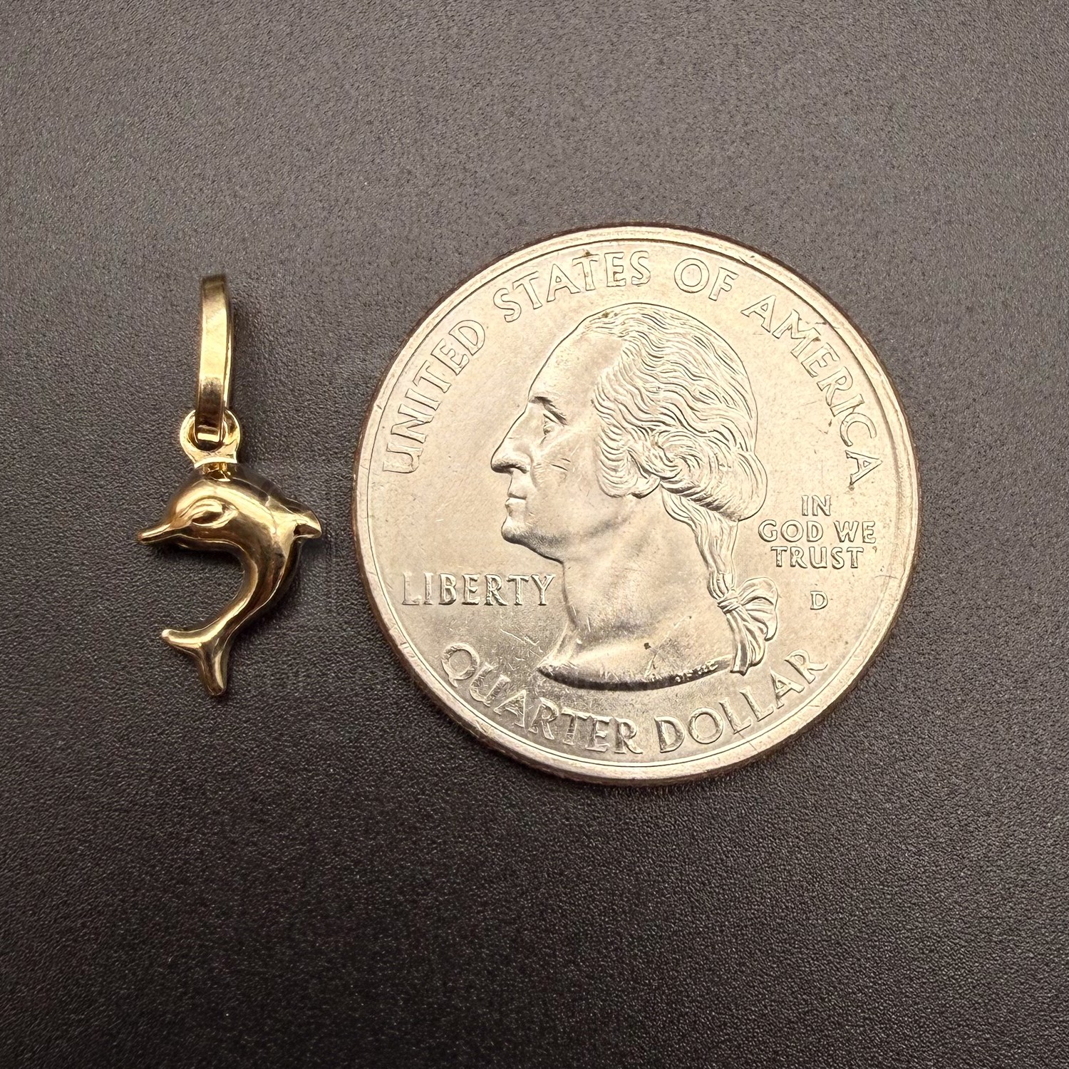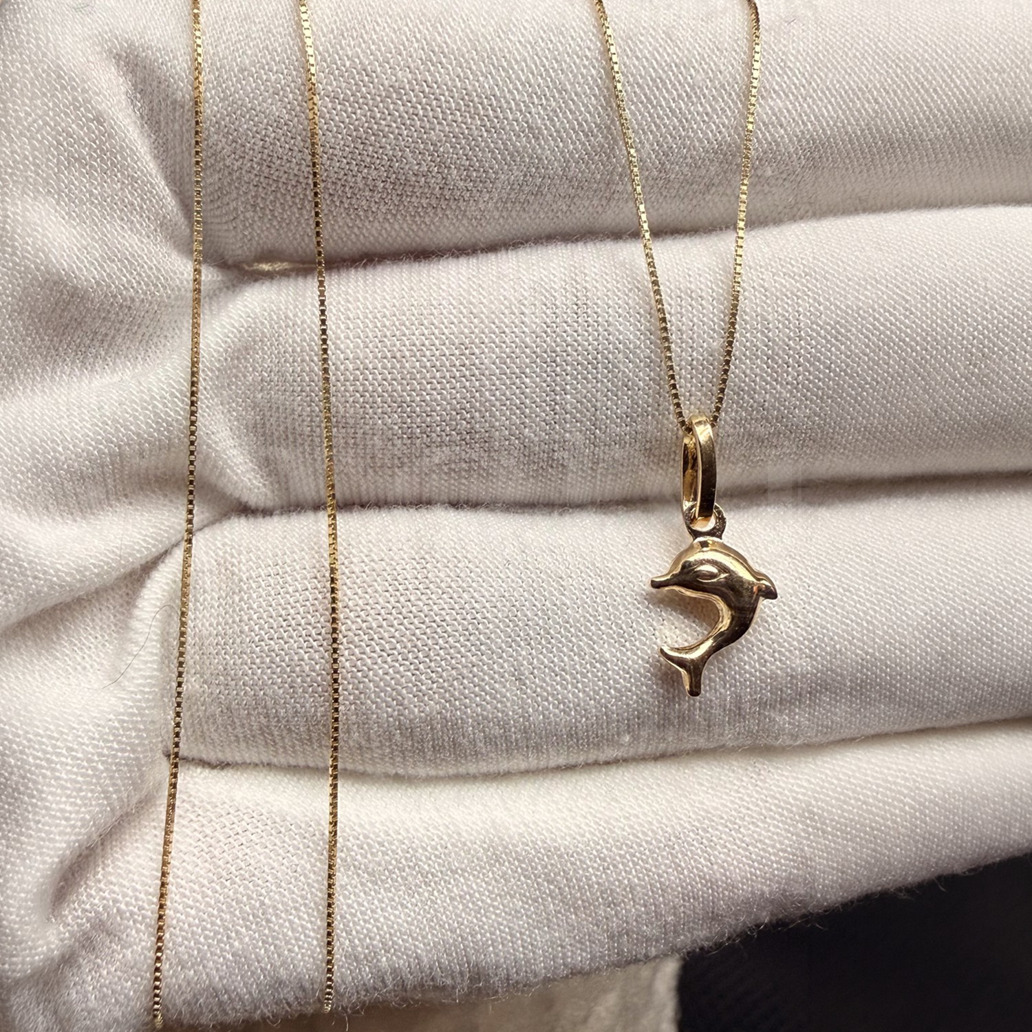 14K Yellow Gold Hollow Dolphin Pendant With Yellow Gold 0.5mm Box Chain - 18 Inch