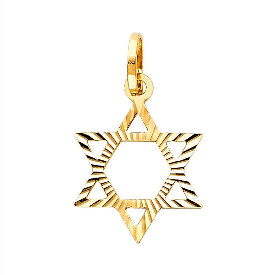 14K Yellow Gold Star of David Pendant - 17 mm X 15 mm