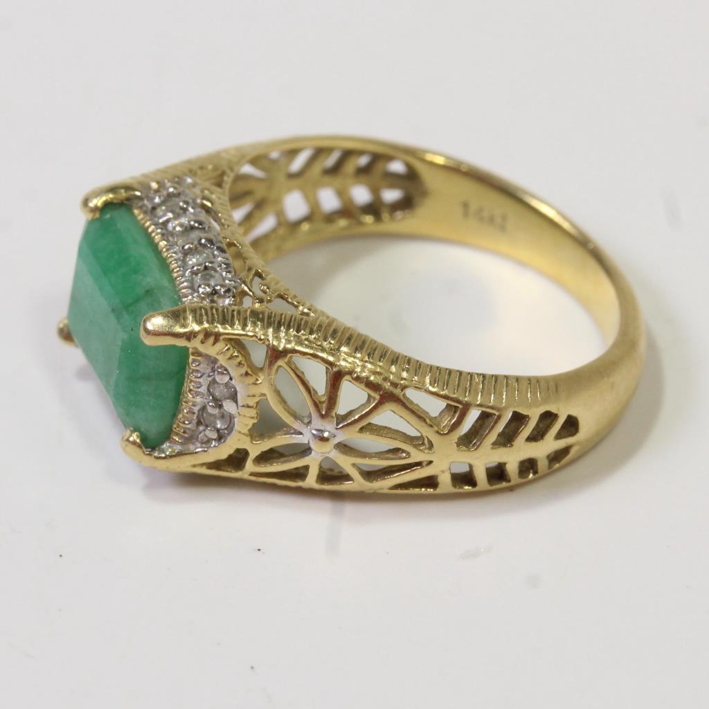 14kt Gold 4g Emerald And Diamond Ring With Official USGL ID Card