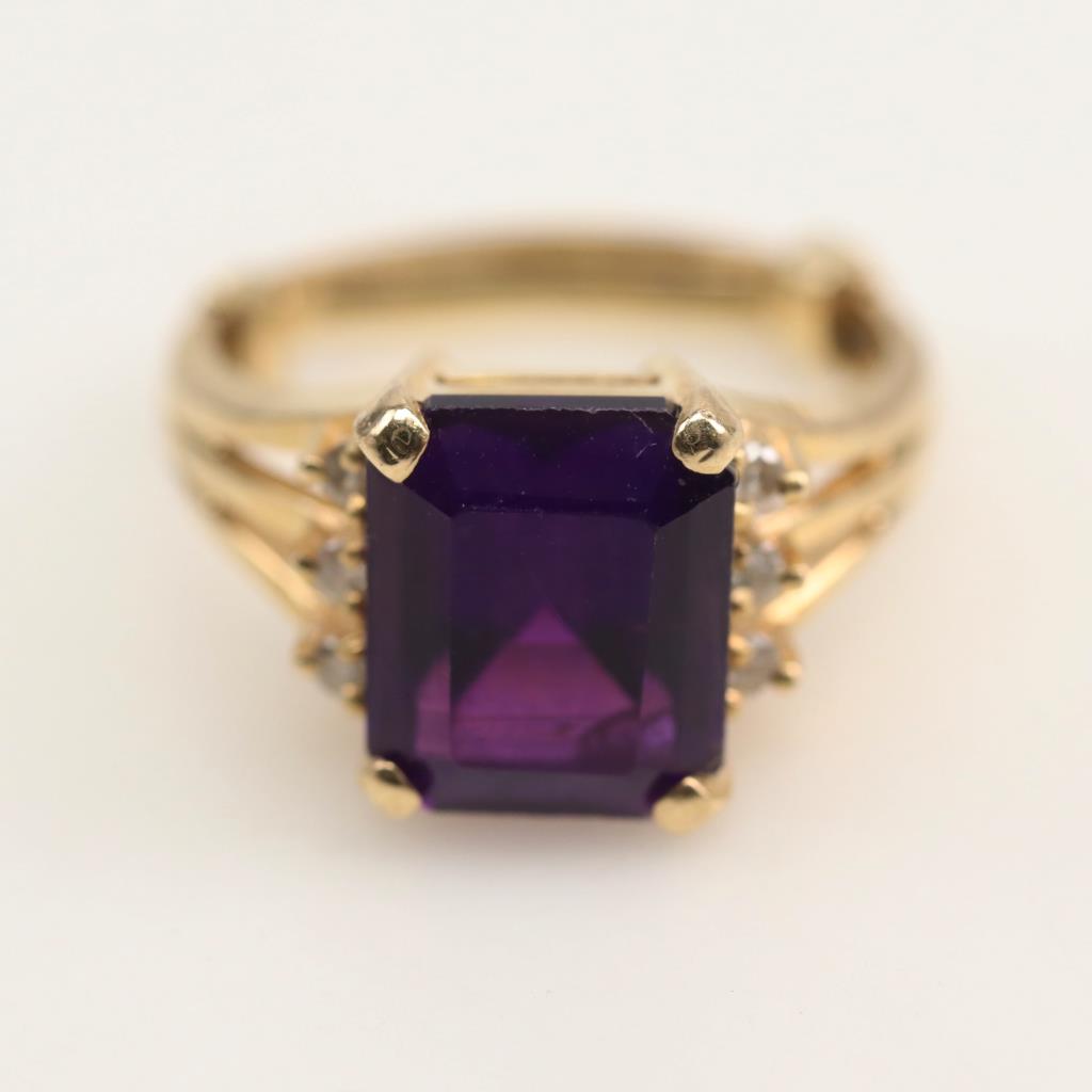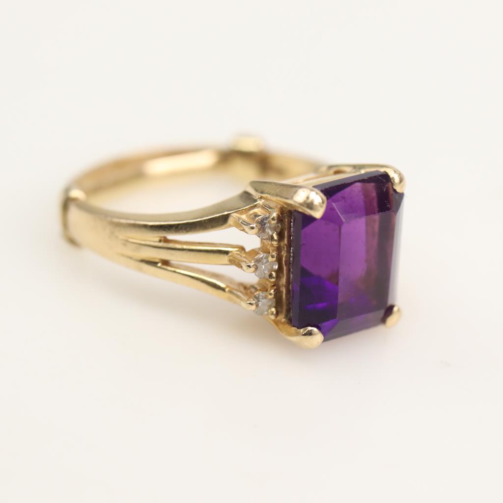 14kt Gold Amethyst Diamond Accent Ring