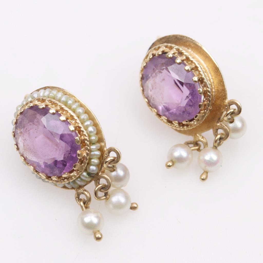 14kt Gold Amethyst Pearl Earrings