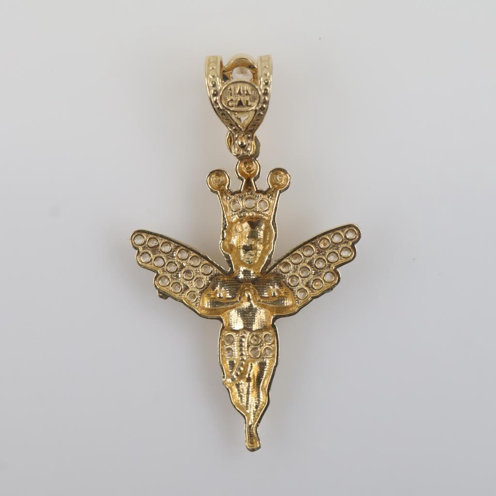 14kt Gold Clear Stone Angel Pendant