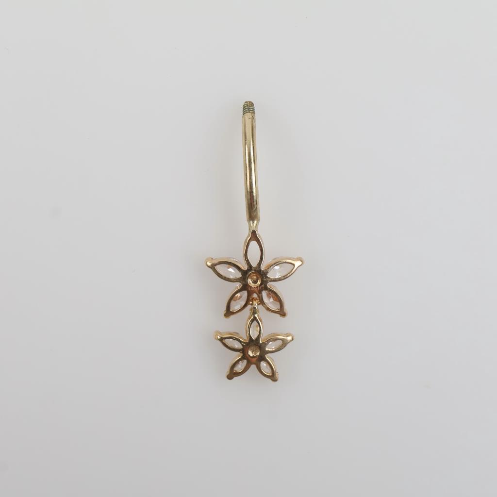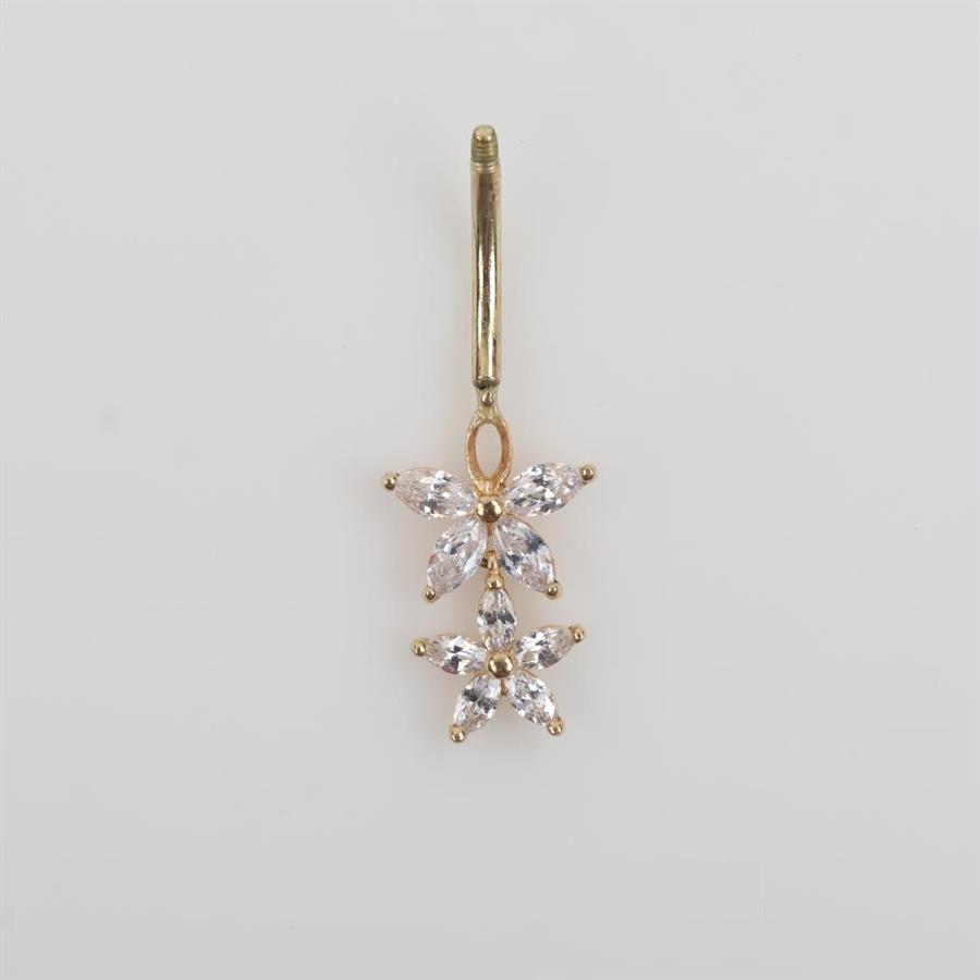 14kt Gold Clear Stone Dangle Belly Button Ring
