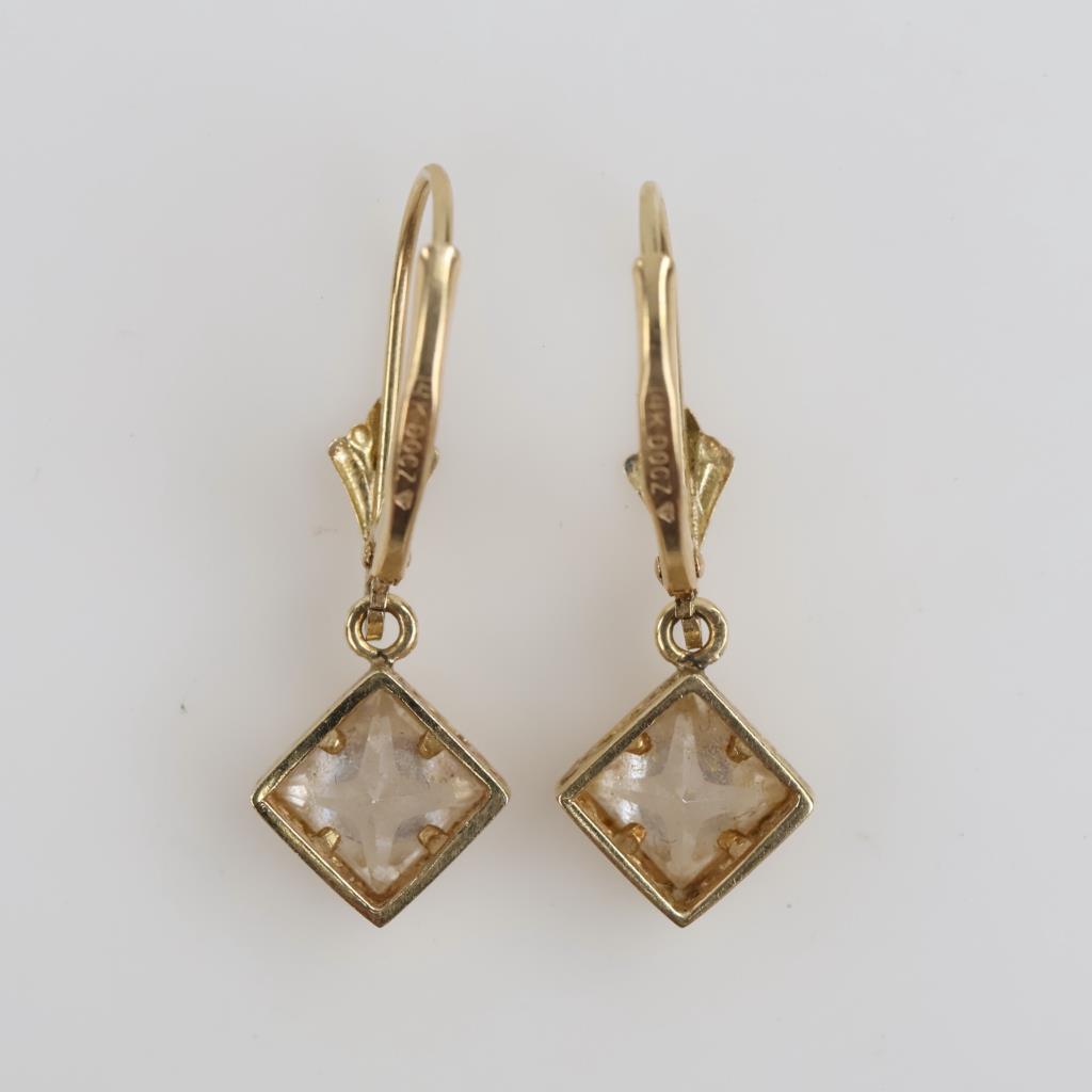 14kt Gold Clear Stone Dangle Earrings